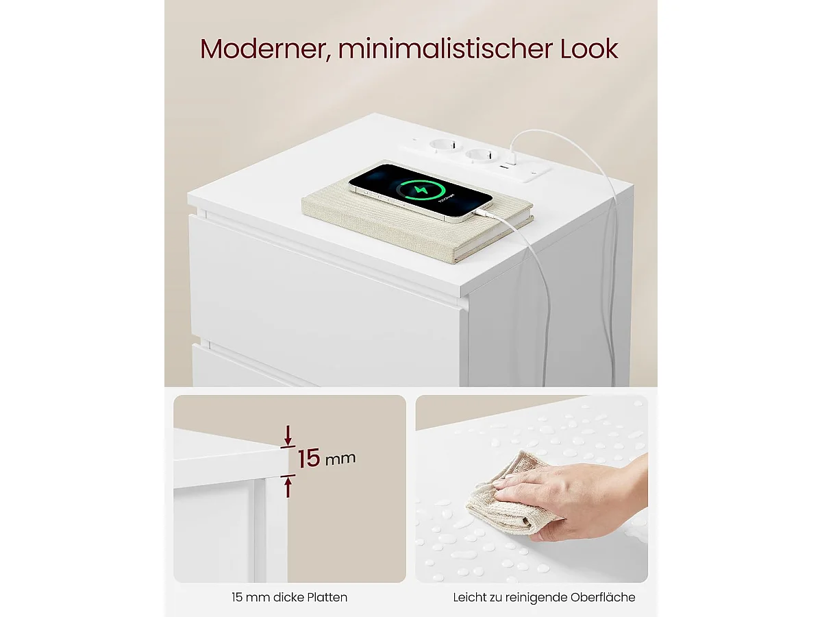 SZAFKA NOCNA BIAŁA Z 2 SZUFLADAMI NOWOCZESNA LOFT STOLIK DO SYPIALNI 45 CM
