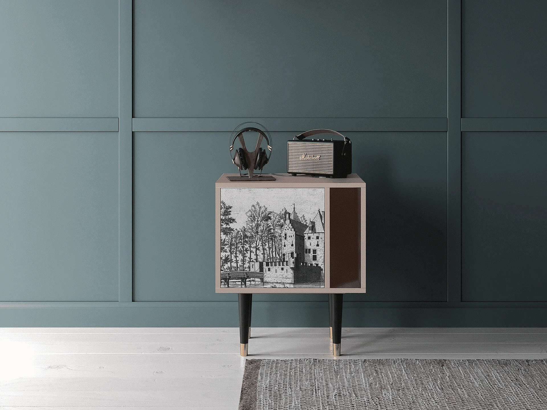 Stolik nocny - 57х69х48 cm - S2 - Castle with Bridge, Latte