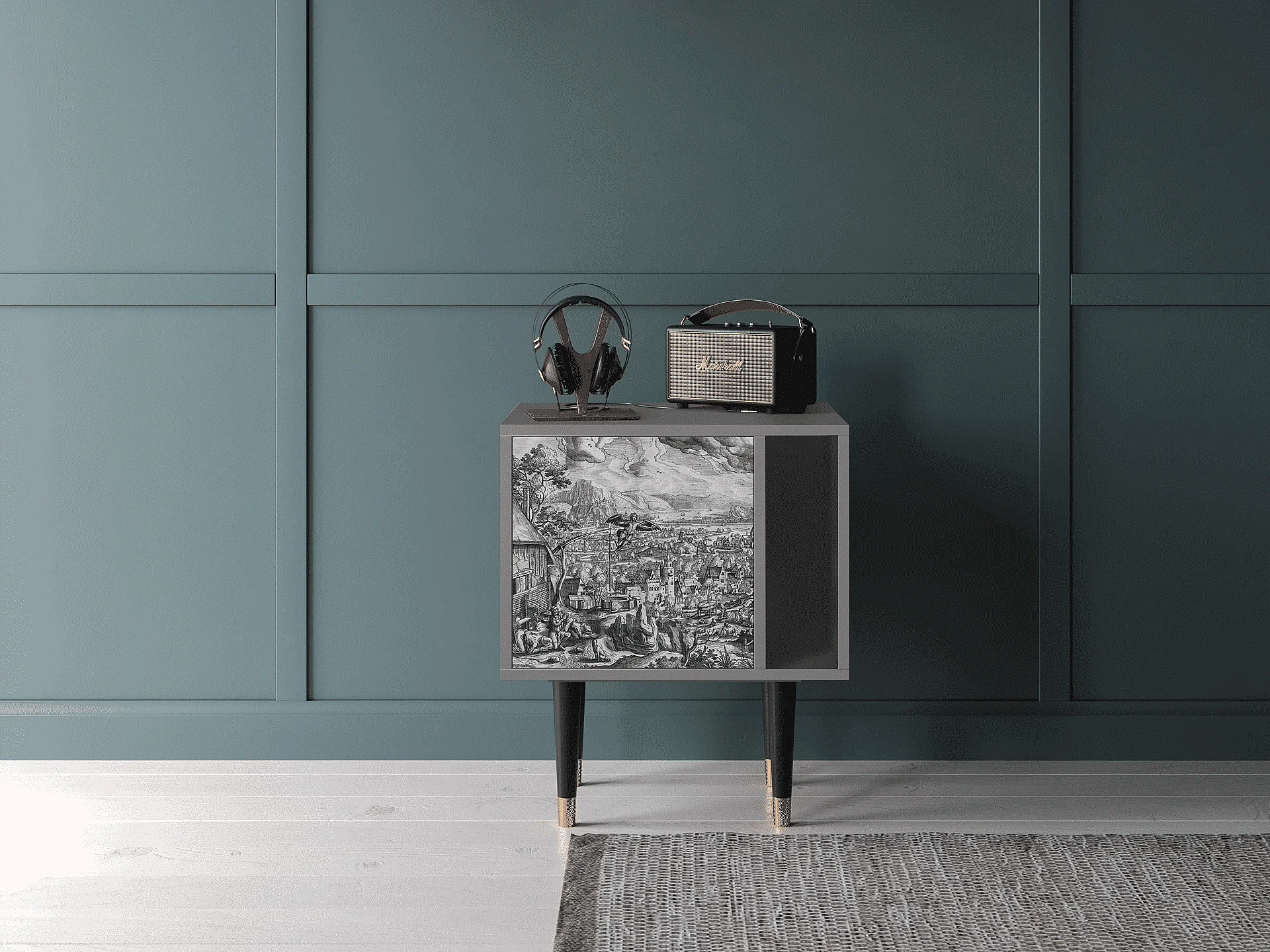 Stolik nocny - 57х69х48 cm - S2 - Big Fish Eat Little, Antracyt