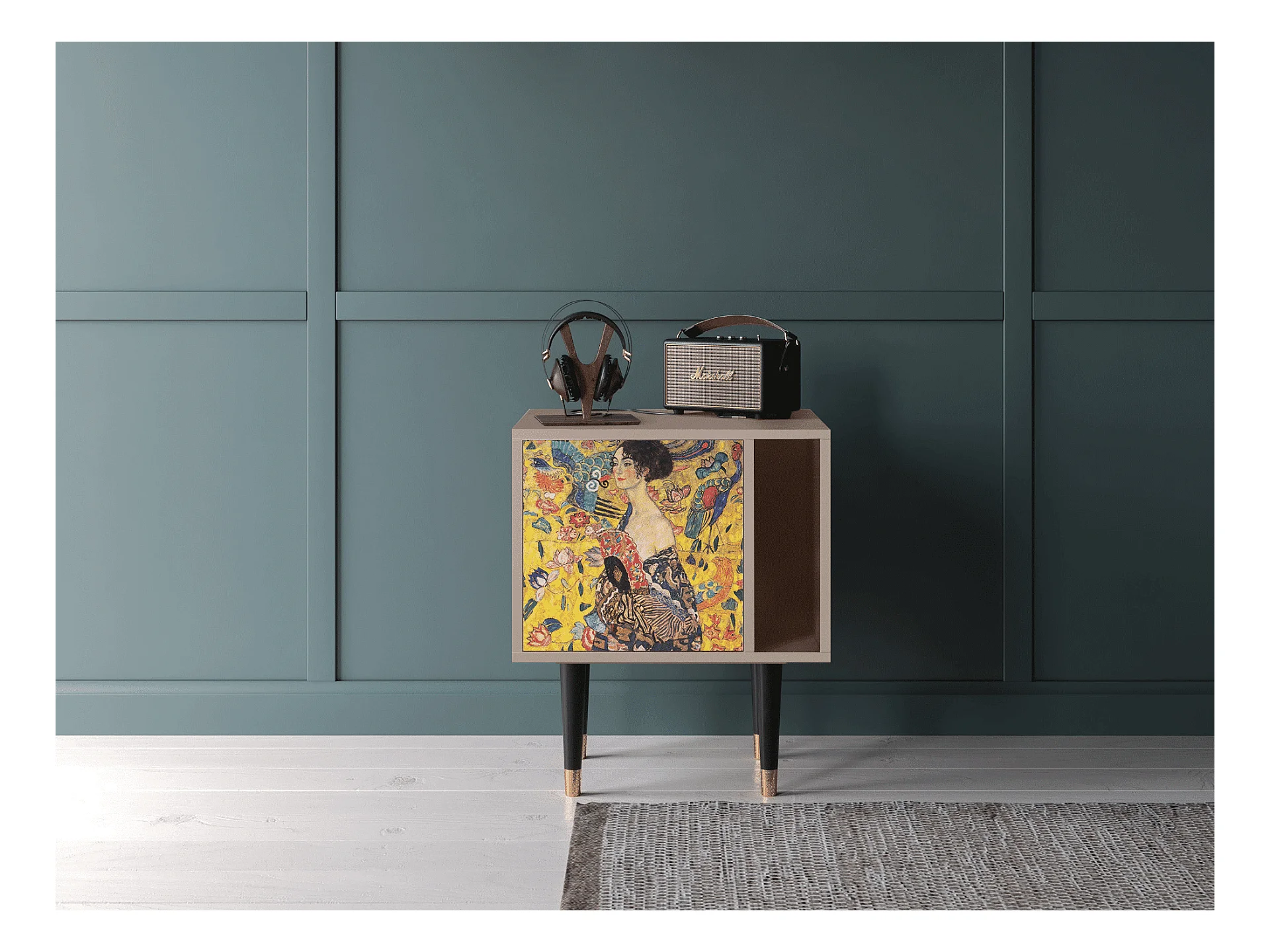 Stolik nocny - 57х69х48 cm - S2 - Lady with Fan by Klimt, Latte