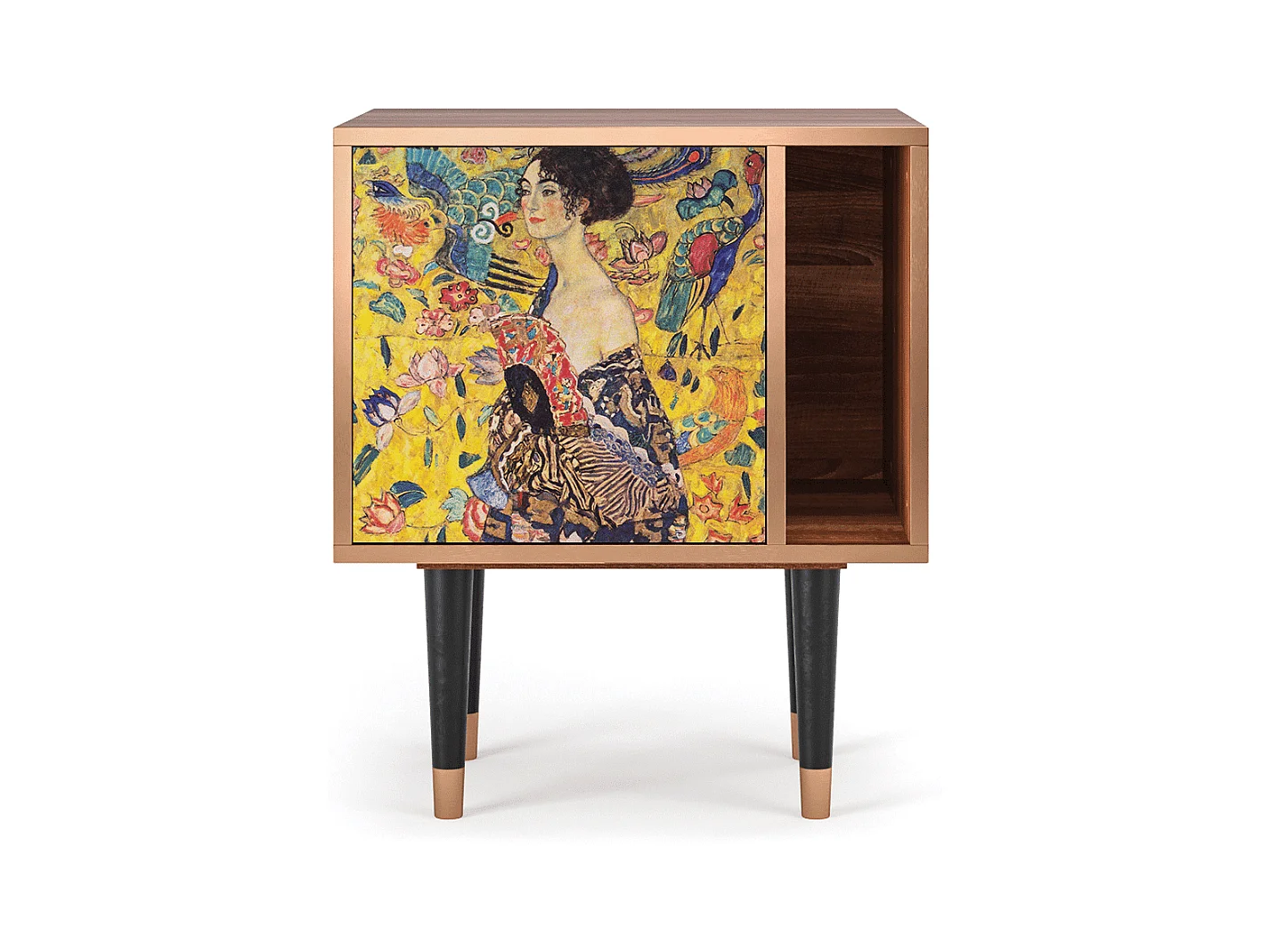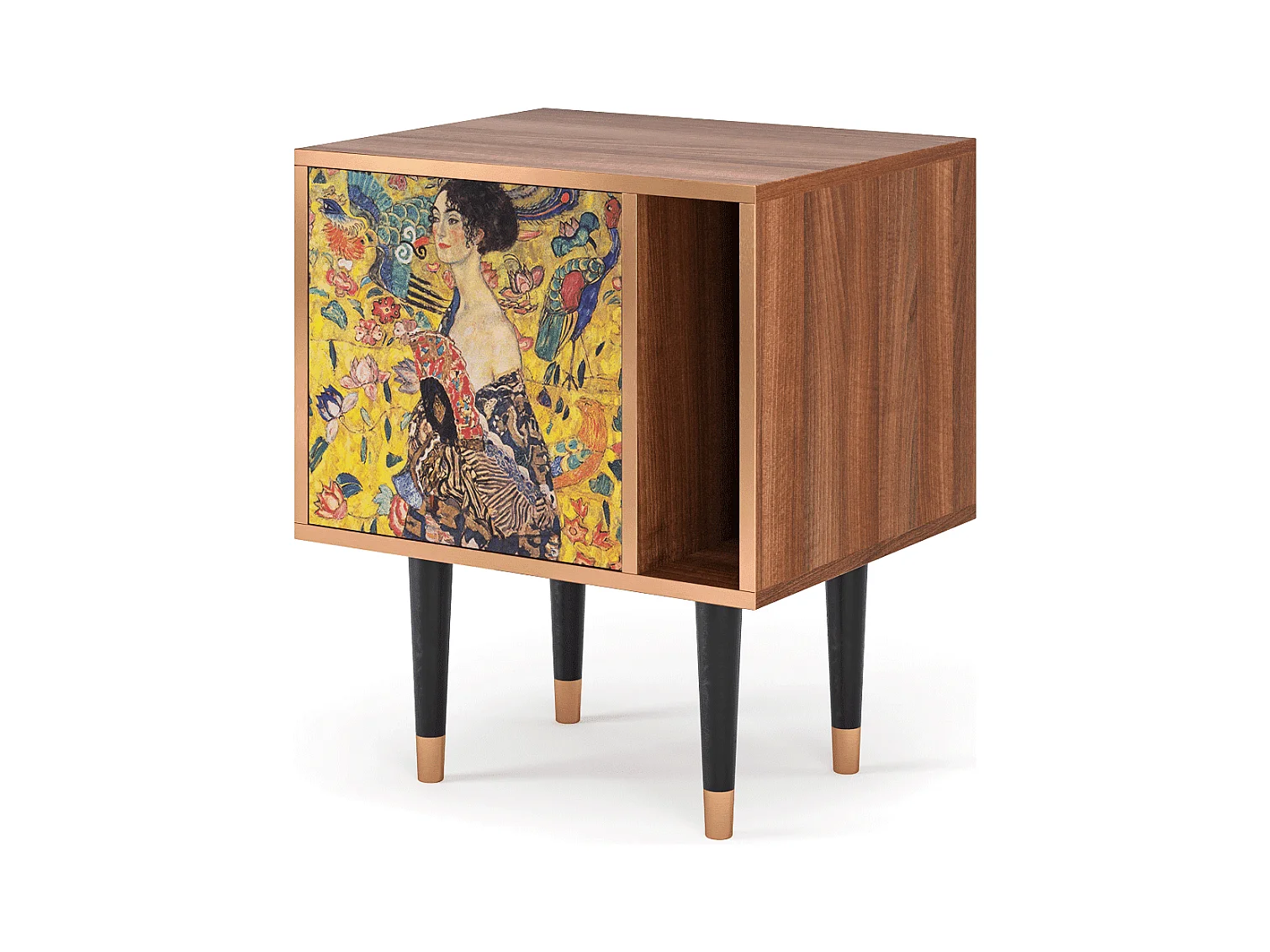 Stolik nocny - 57х69х48 cm - S2 - Lady with Fan by Klimt, Orzech