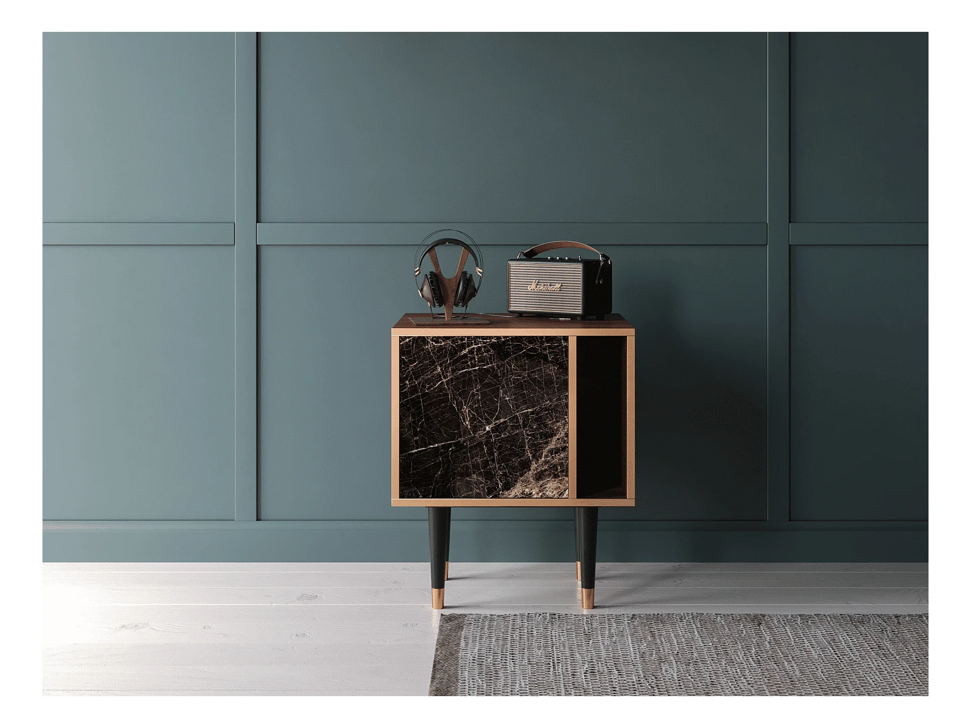 Stolik nocny - 57х69х48 cm - S2 - Raven Marble, Orzech