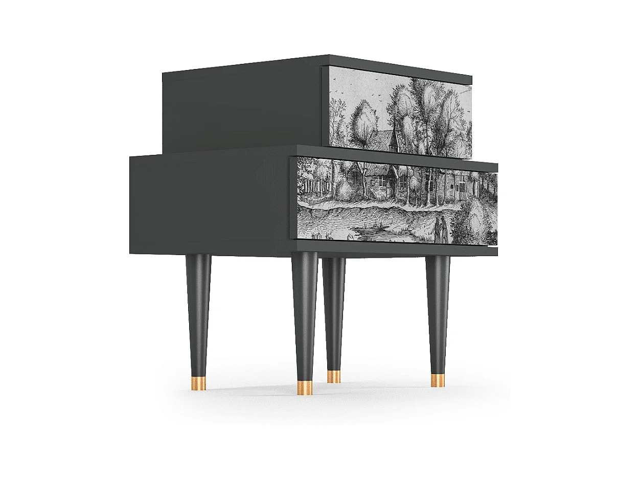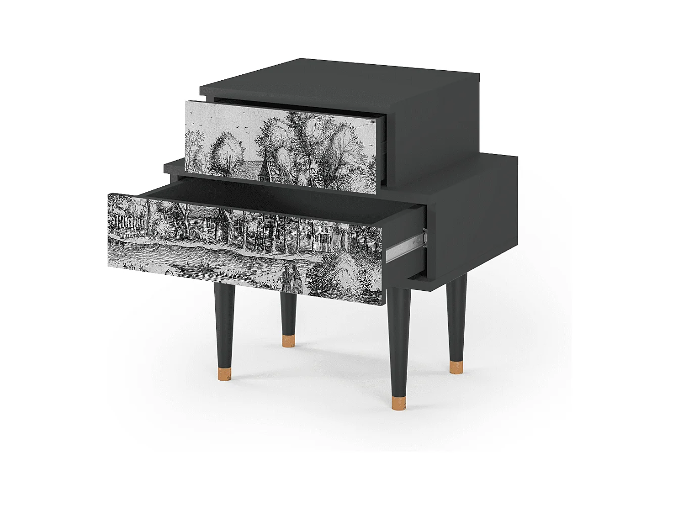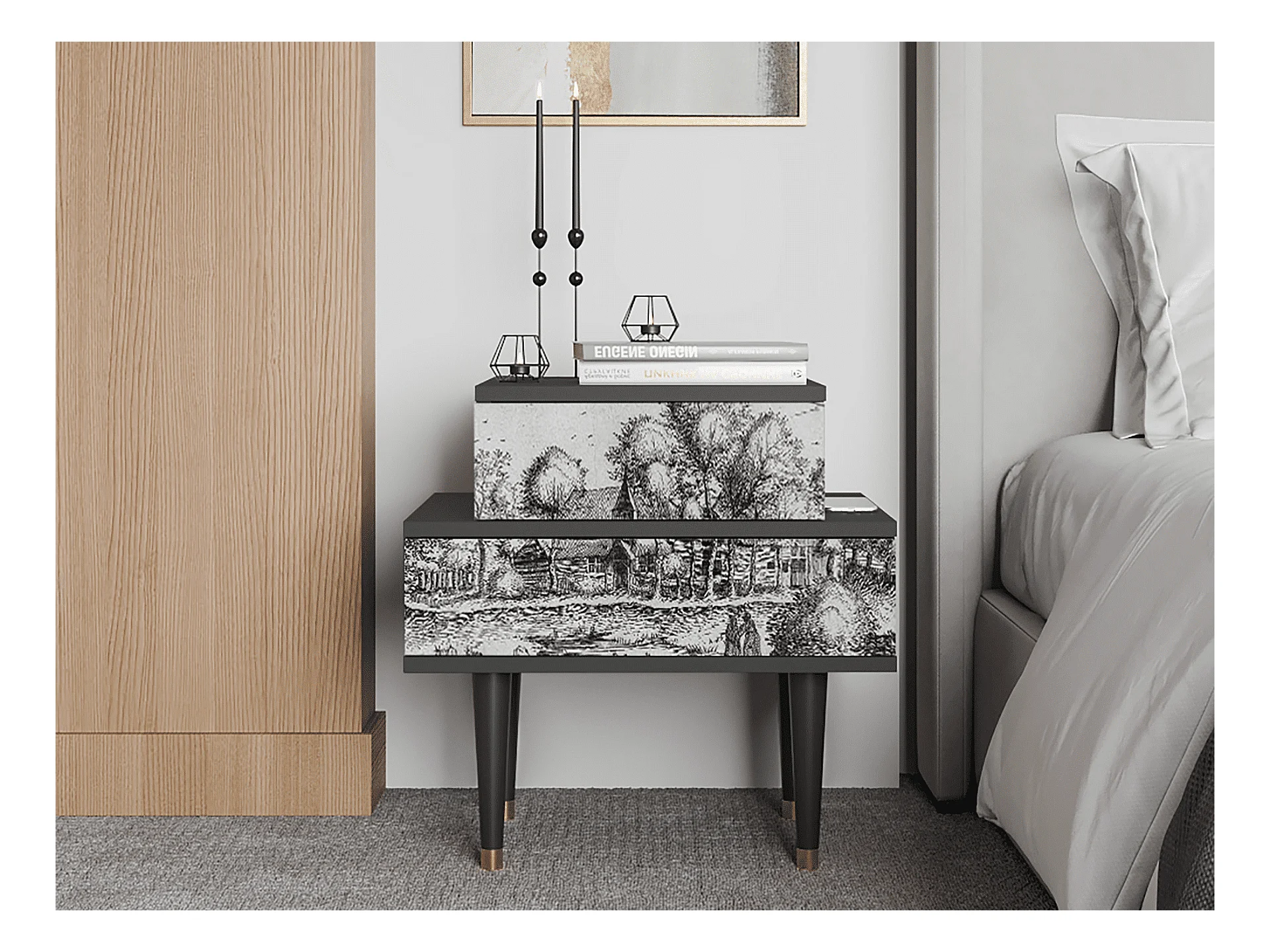 Stolik nocny - 58х58х41 cm - NS1 - Gingko leaves, Antracyt