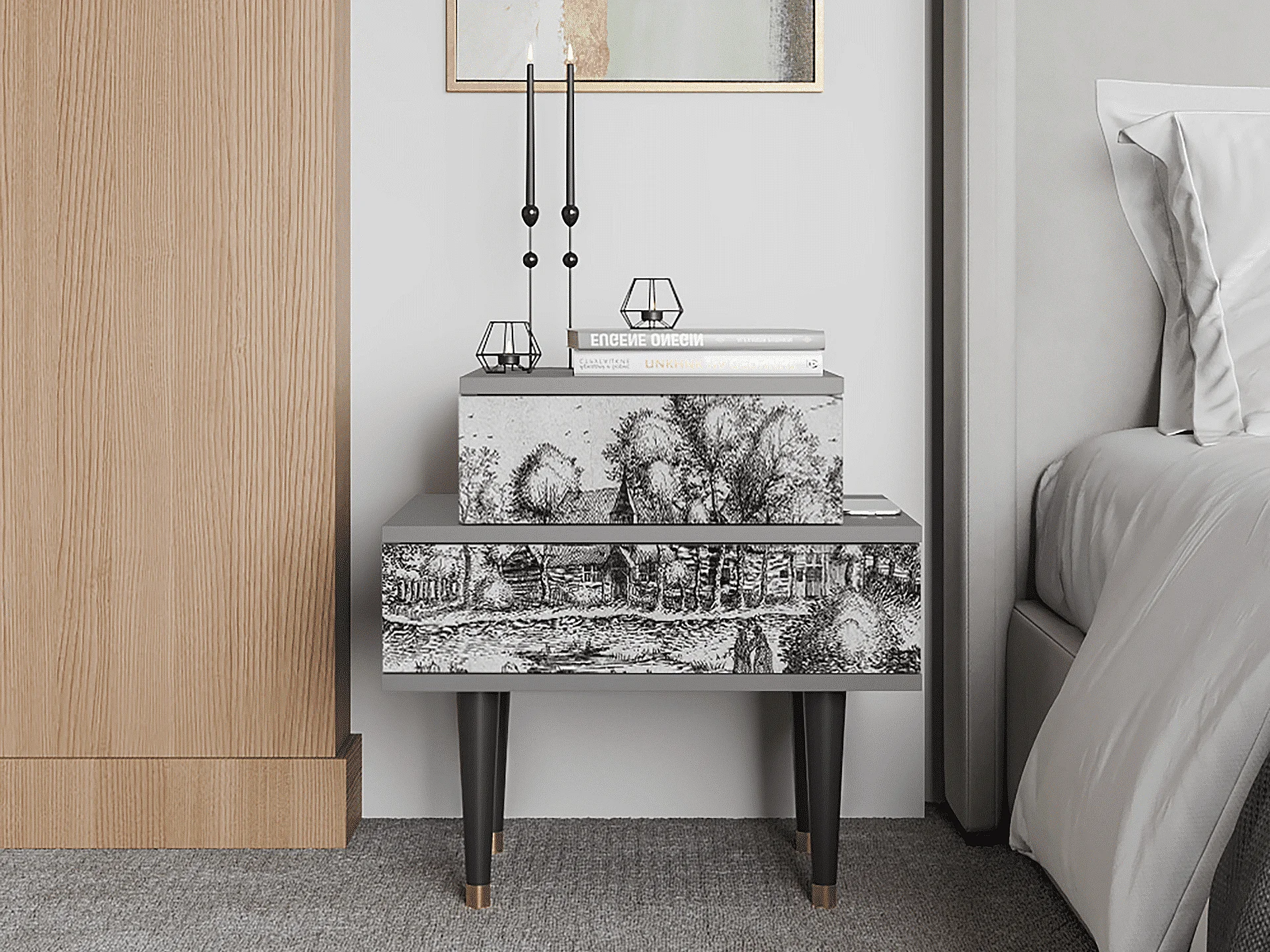 Stolik nocny - 58х58х41 cm - NS1 - Dark Flower Bed, Szary