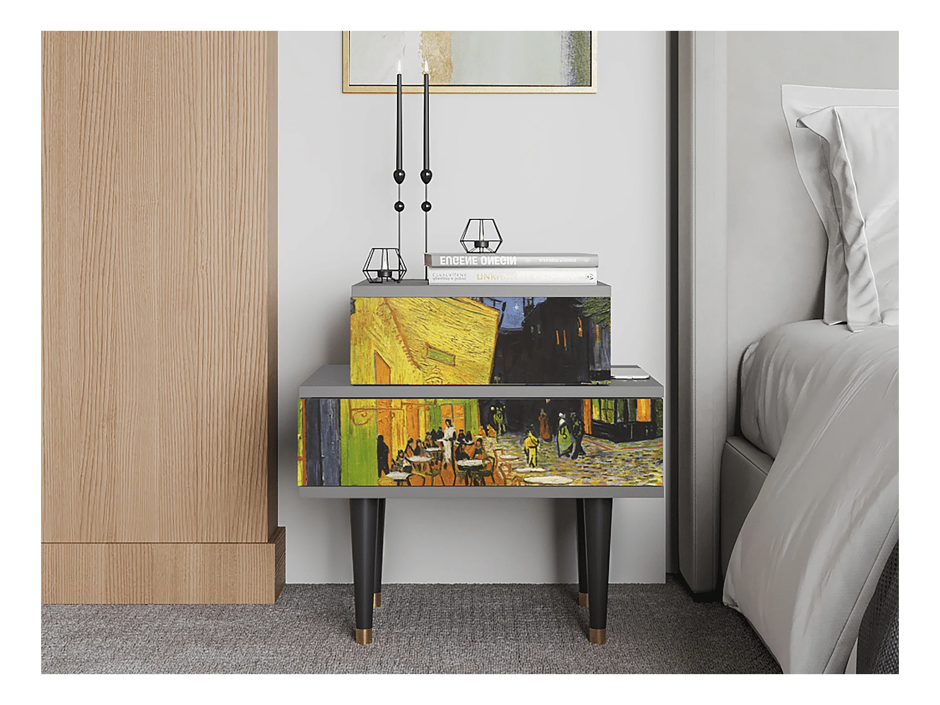 Stolik nocny - 58х58х41 cm - NS1 - Café Terrace at Night, Szary