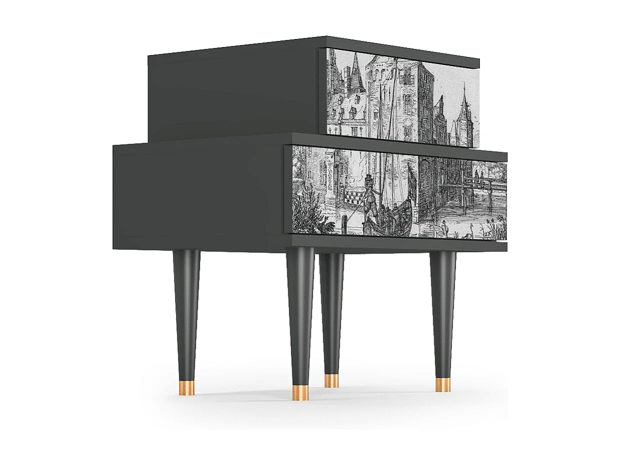 Stolik nocny - 58х58х41 cm - NS1 - Castle with Bridge, Antracyt