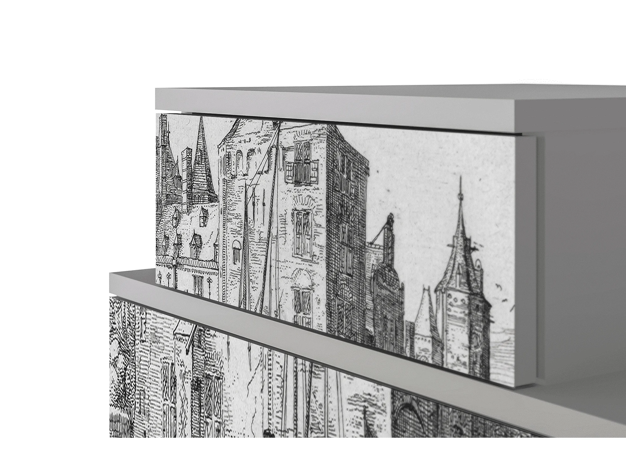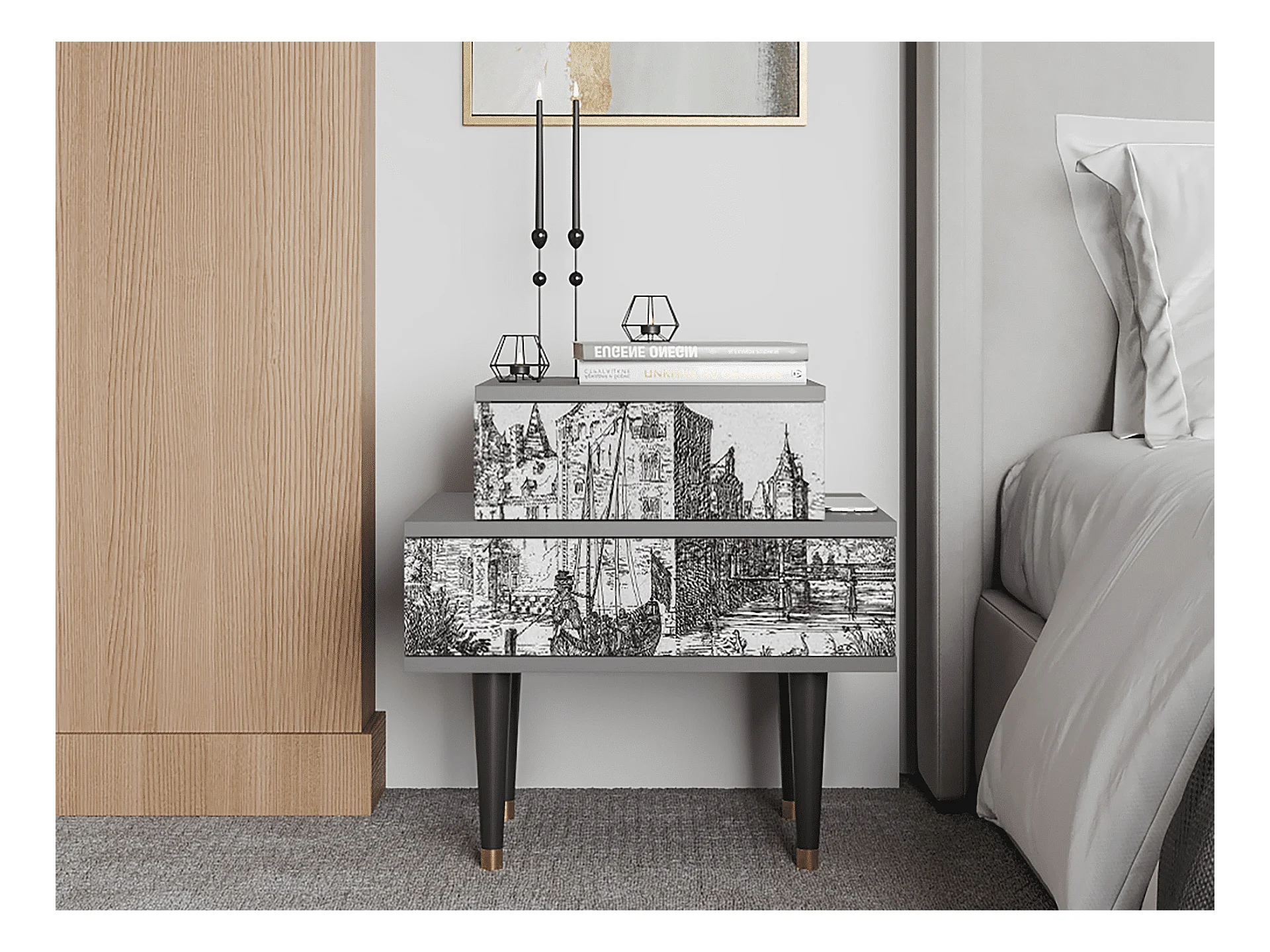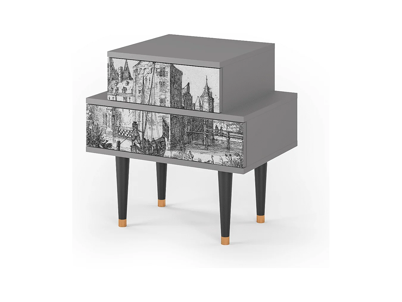Stolik nocny - 58х58х41 cm - NS1 - Castle with Bridge, Szary