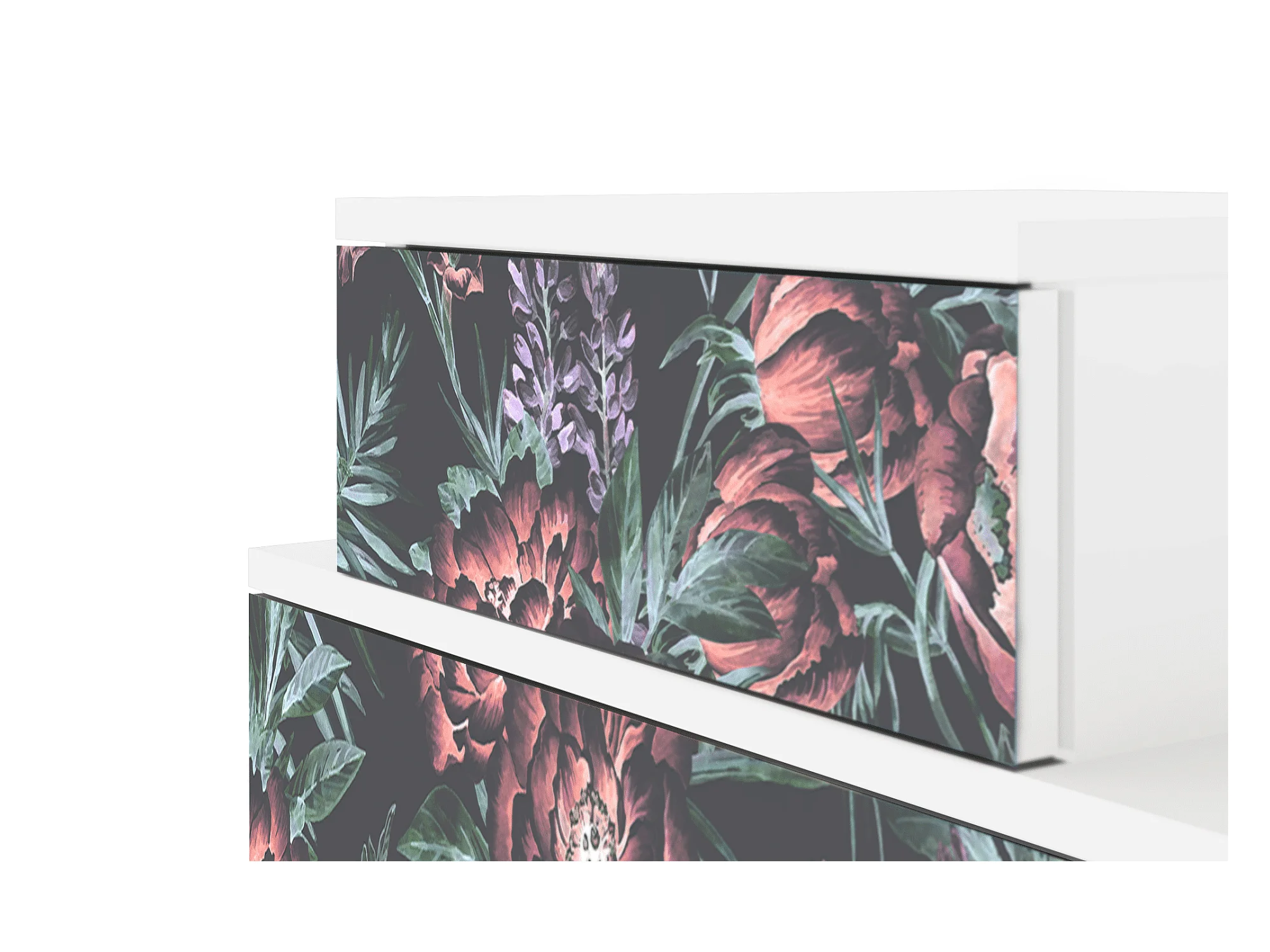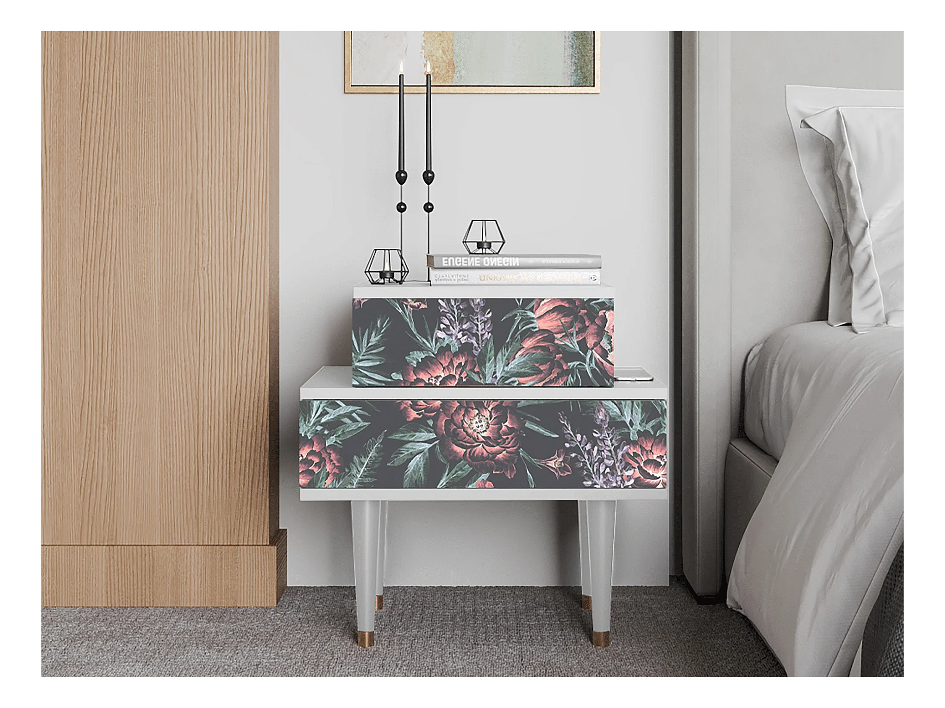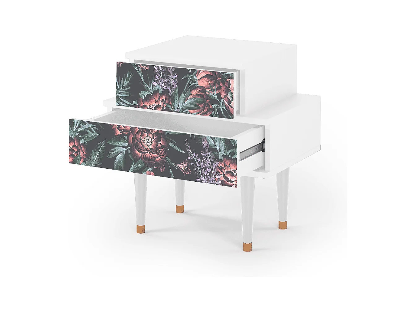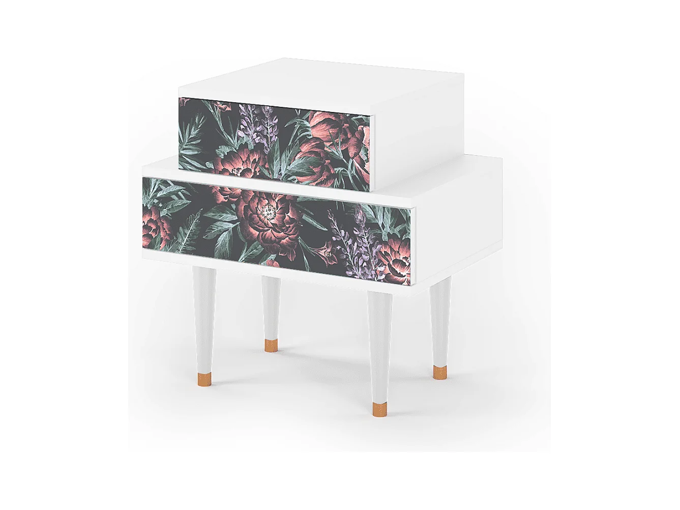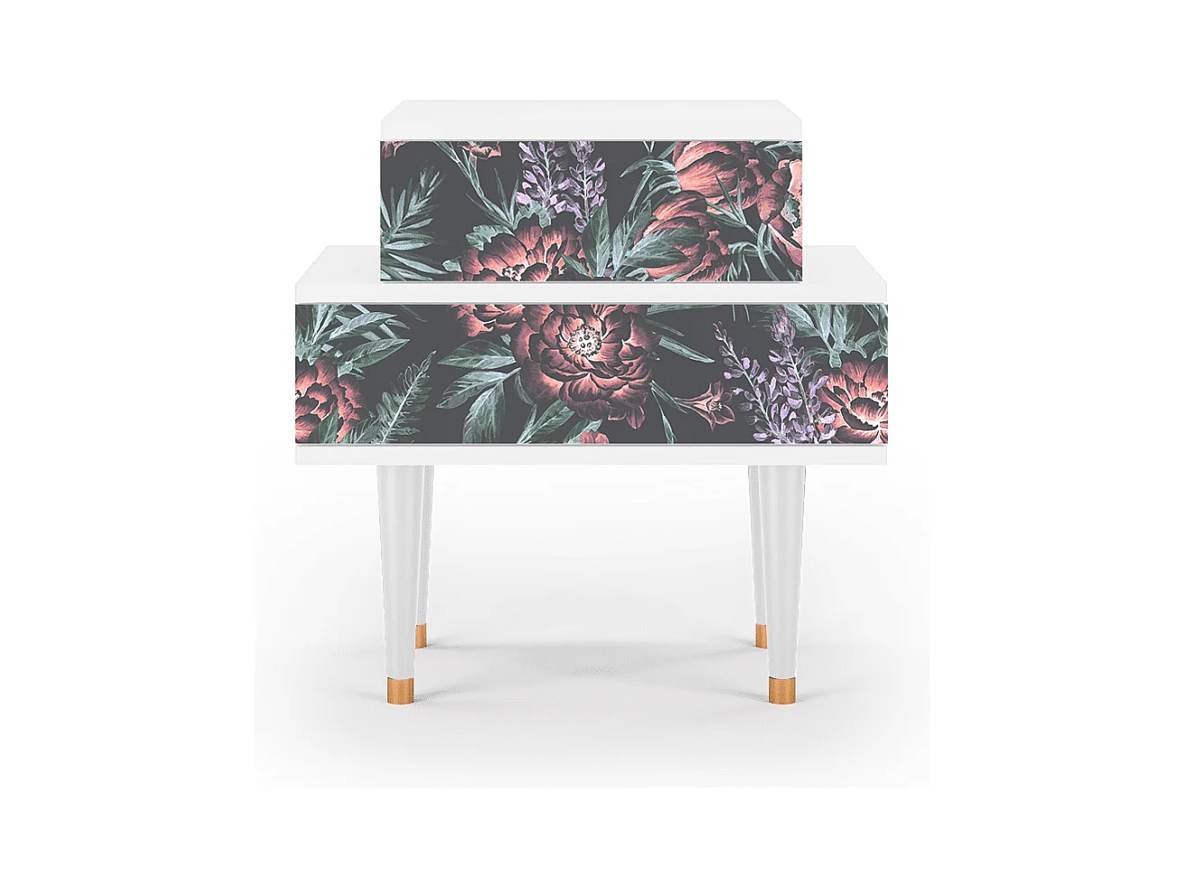 Stolik nocny - 58х58х41 cm - NS1 - Dark Peonies, Biały