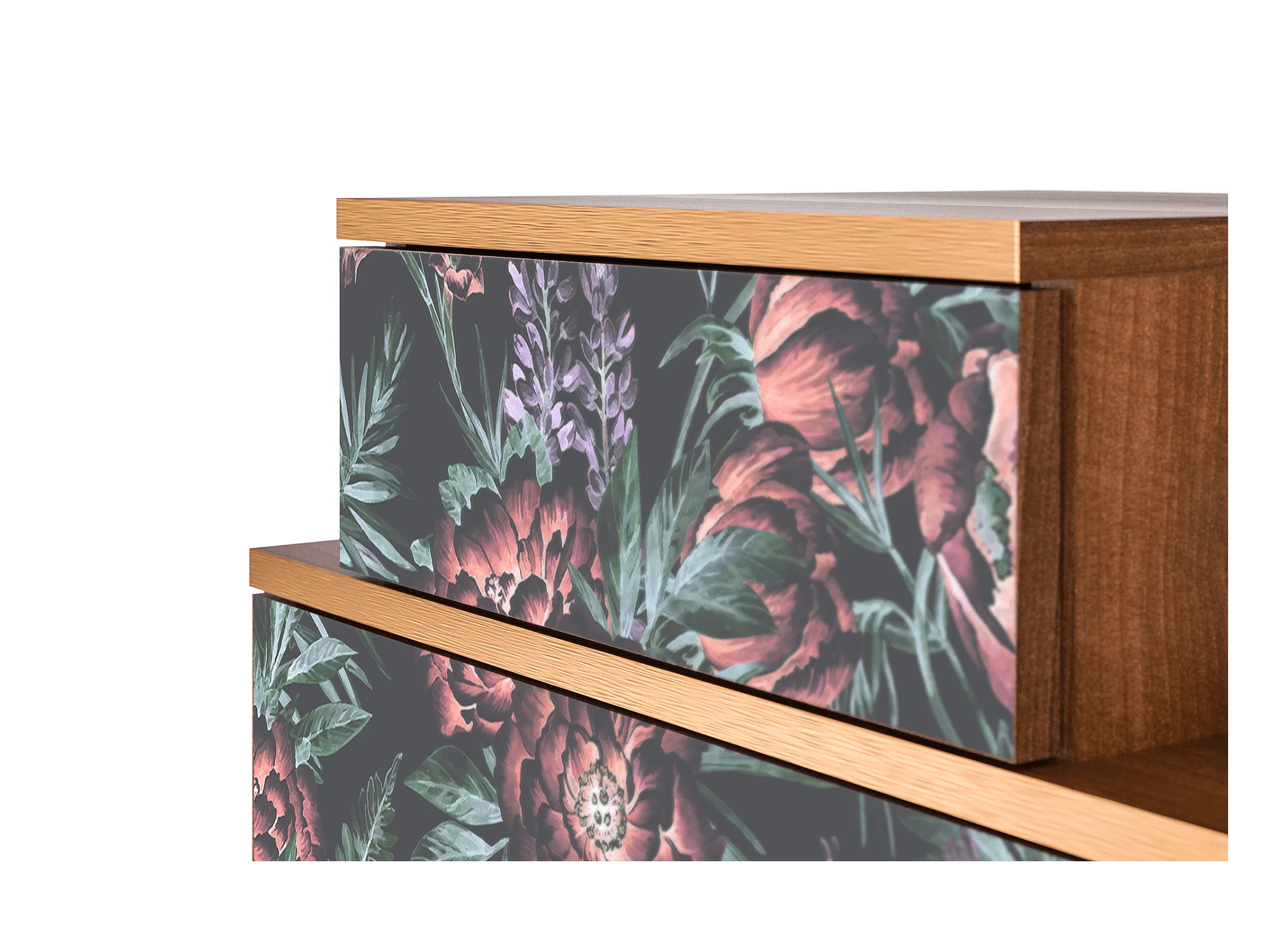 Stolik nocny - 58х58х41 cm - NS1 - Dark Peonies, Orzech