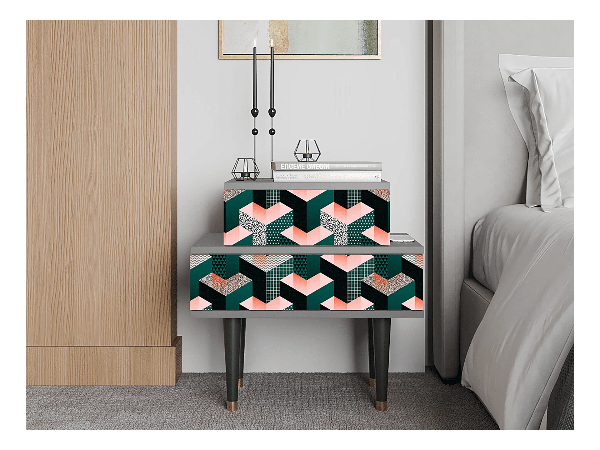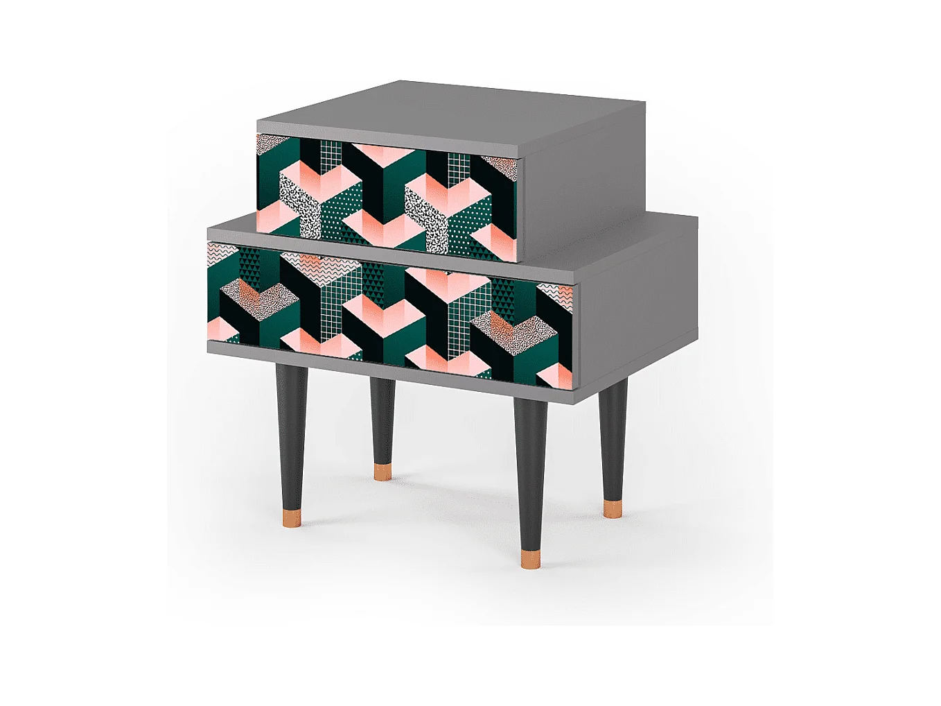 Stolik nocny - 58х58х41 cm - NS1 - Geometric Madness, Szary
