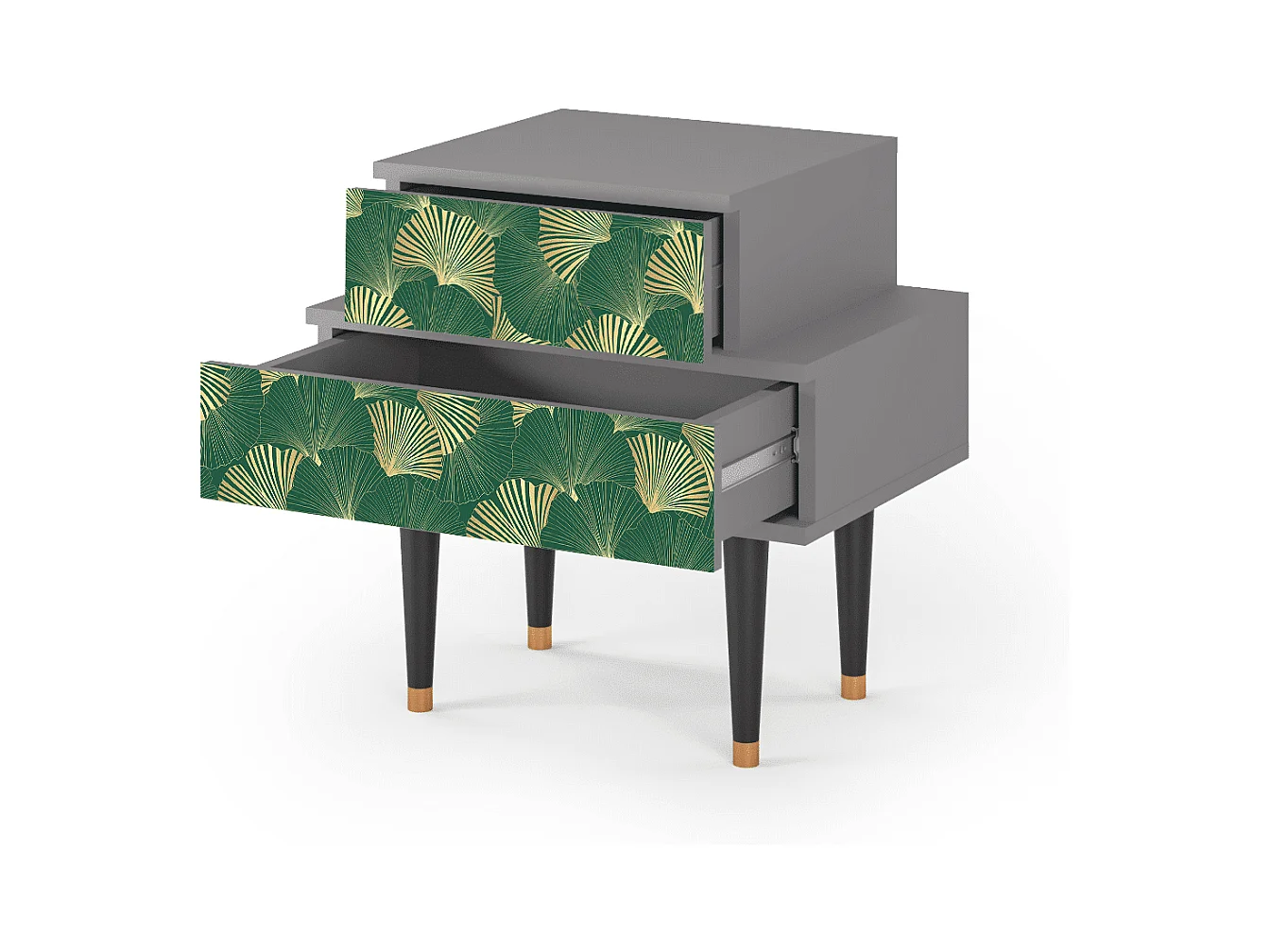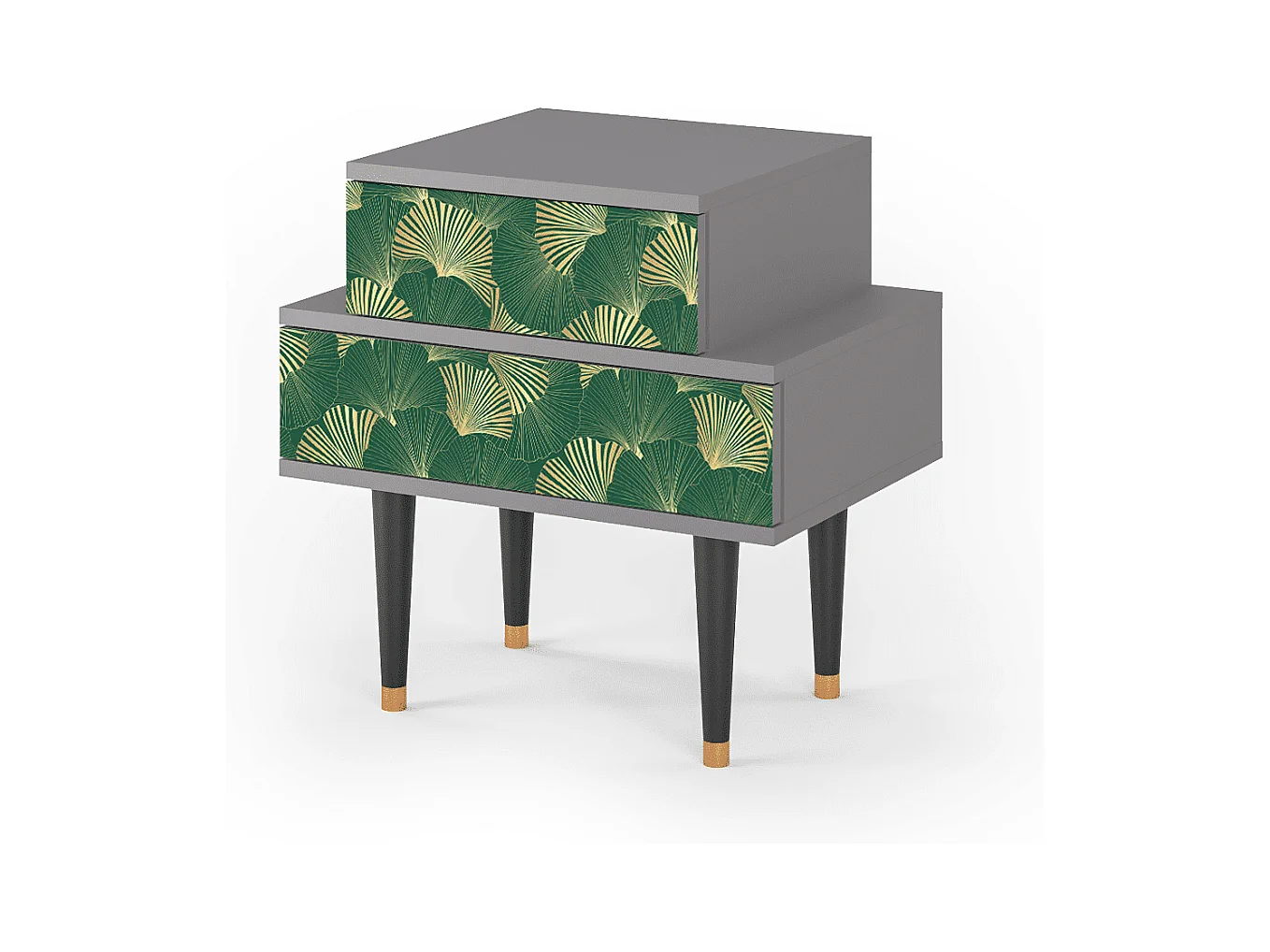 Stolik nocny - 58х58х41 cm - NS1 - Gold Ginkgo, Szary