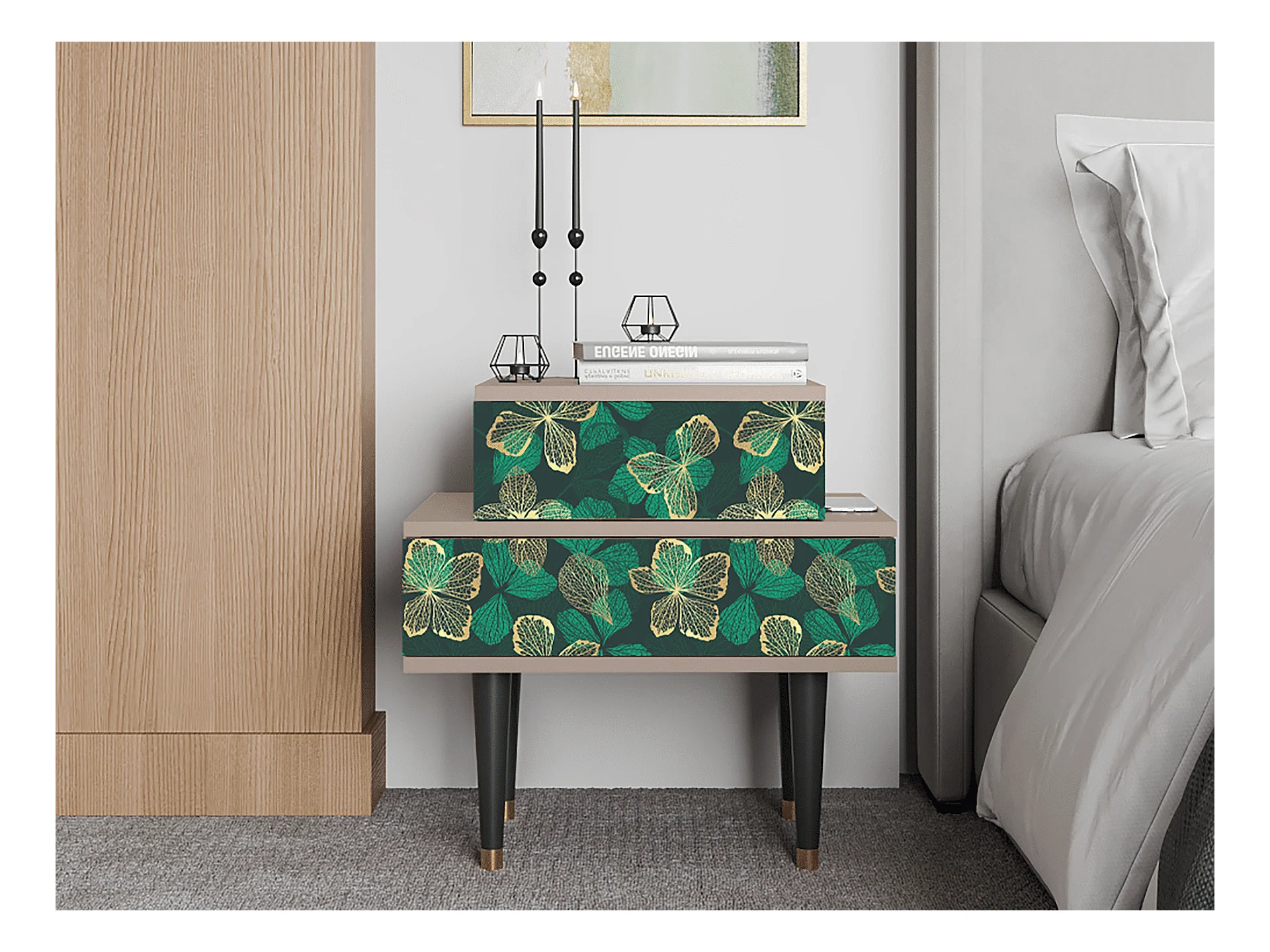 Stolik nocny - 58х58х41 cm - NS1 - Green Flower, Latte