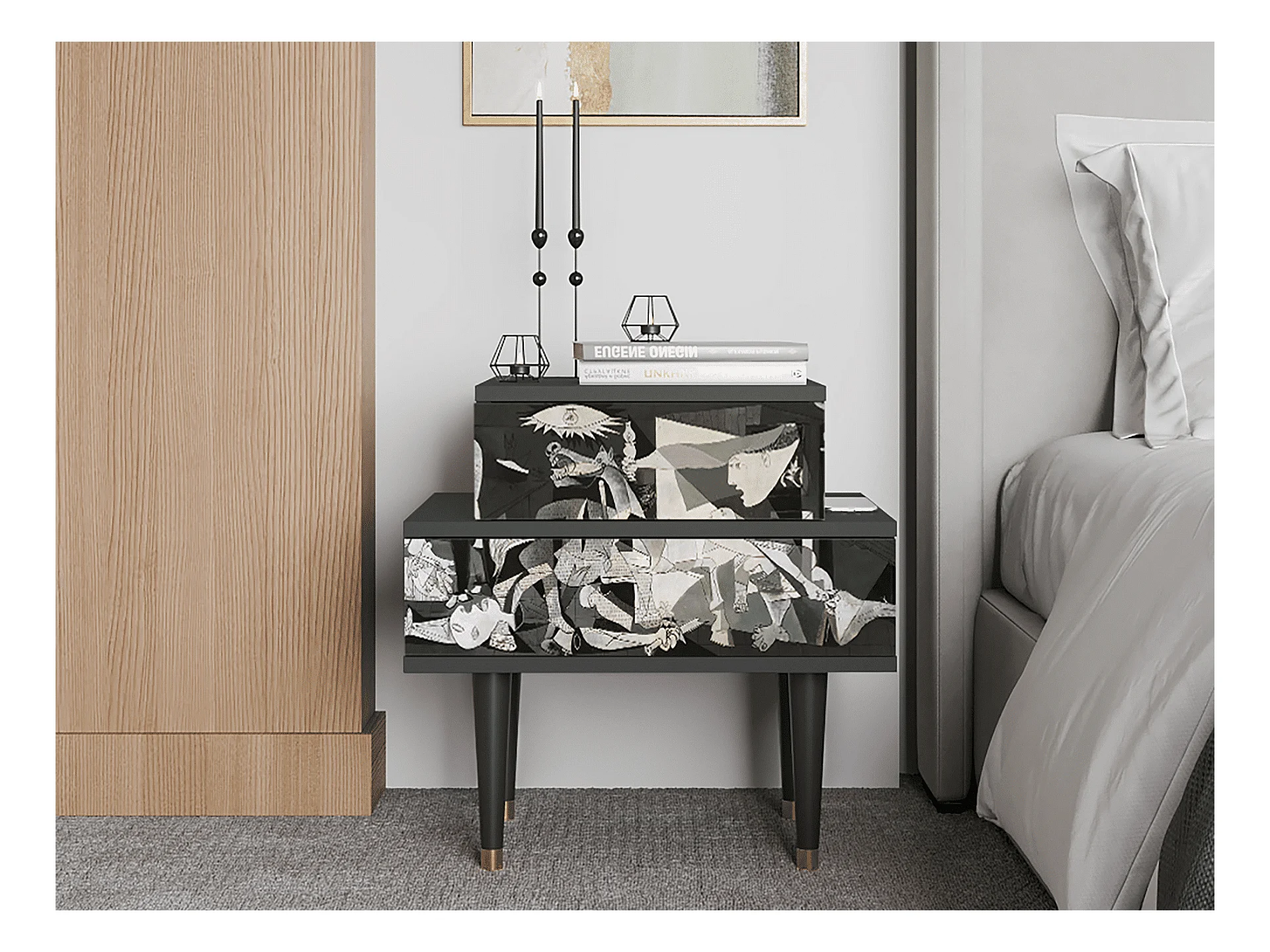 Stolik nocny - 58х58х41 cm - NS1 - Guernica by Picasso, Antracyt