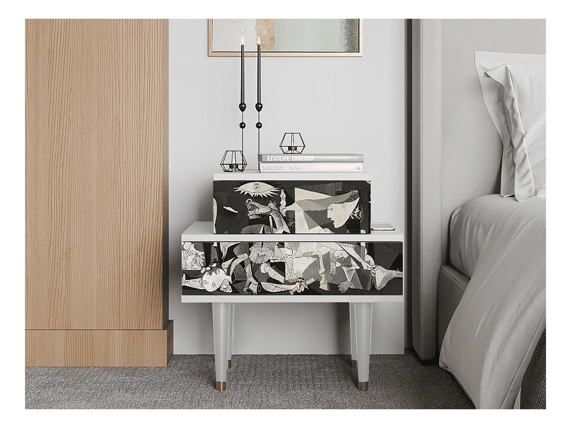 Stolik nocny - 58х58х41 cm - NS1 - Guernica by Picasso, Biały
