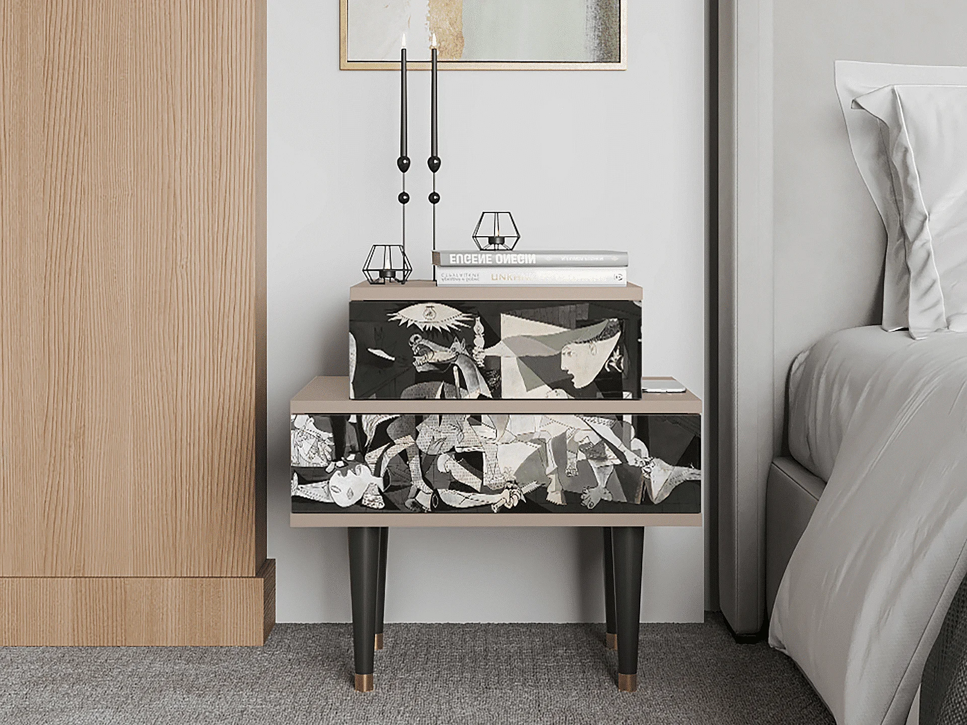 Stolik nocny - 58х58х41 cm - NS1 - Guernica by Picasso, Latte