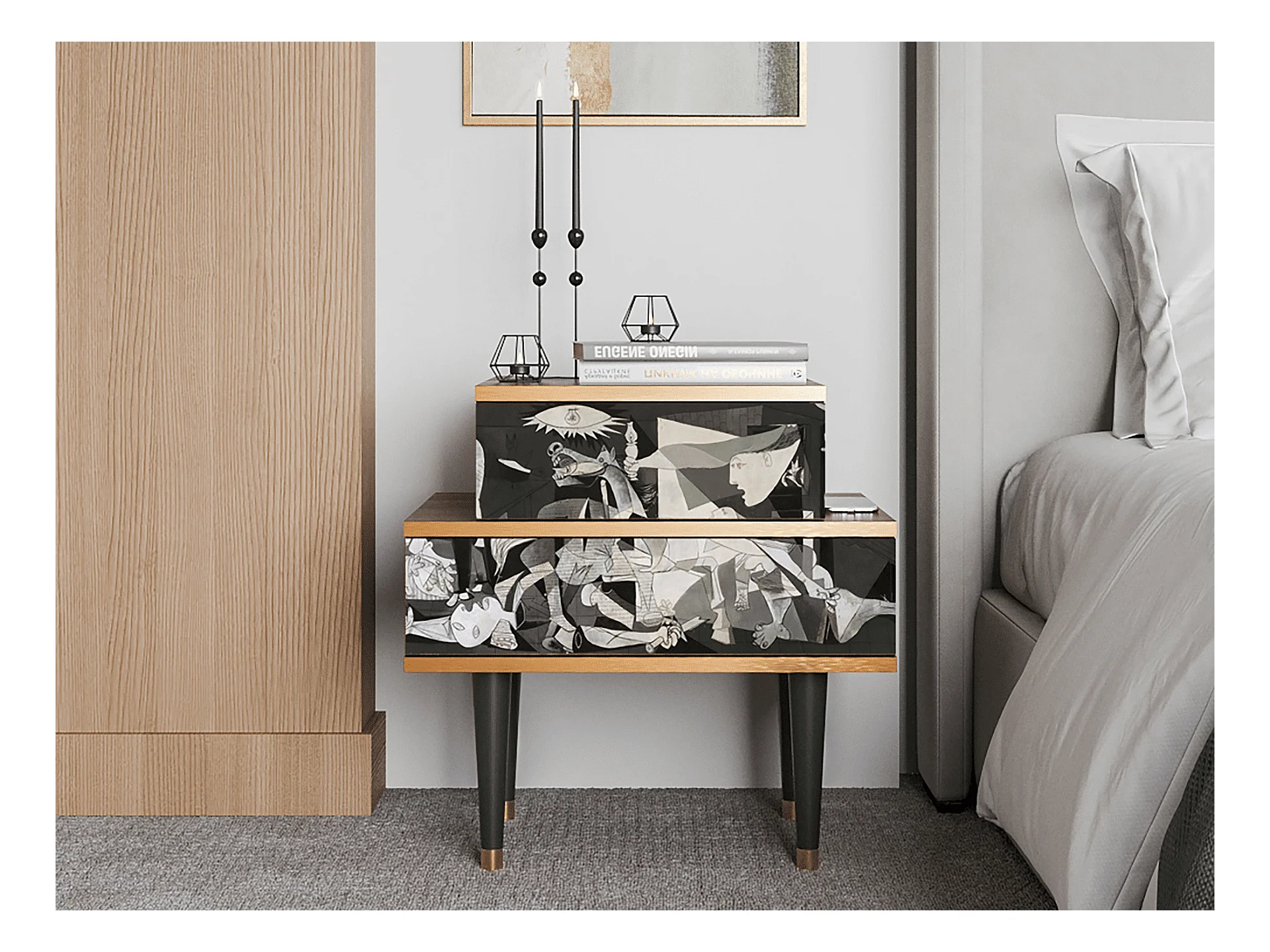 Stolik nocny - 58х58х41 cm - NS1 - Guernica by Picasso, Orzech