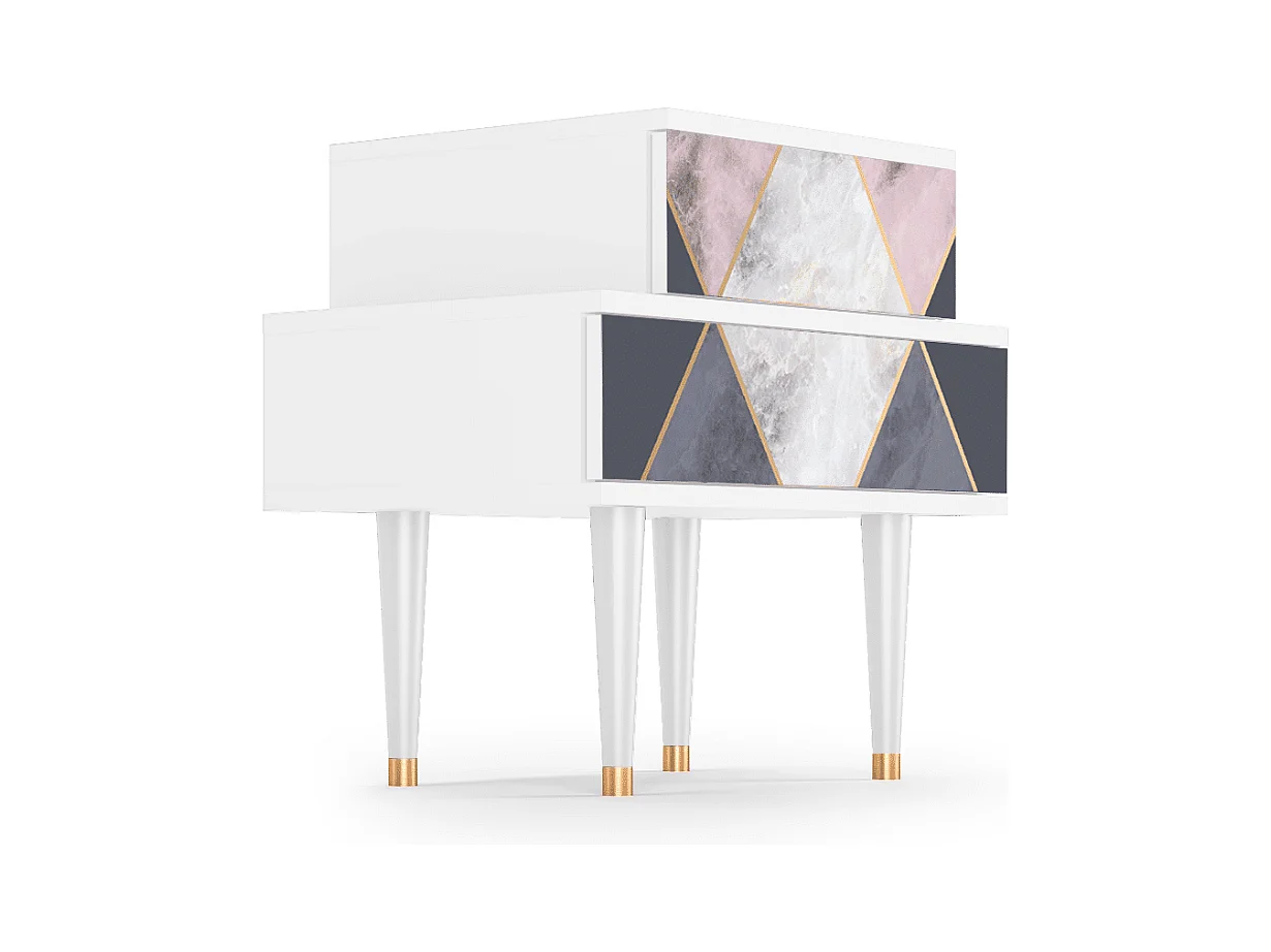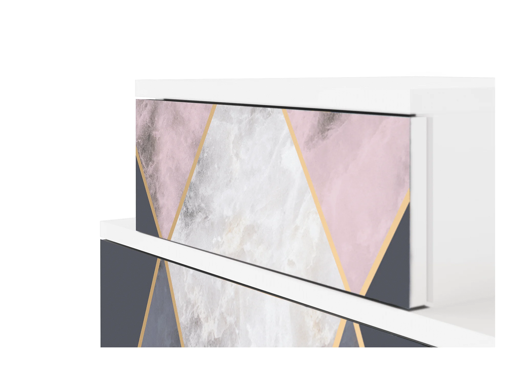 Szafka nocna z 2 szufladami - Biały z połyskiem i złoty - VUKIA marki Pascal Morabito
