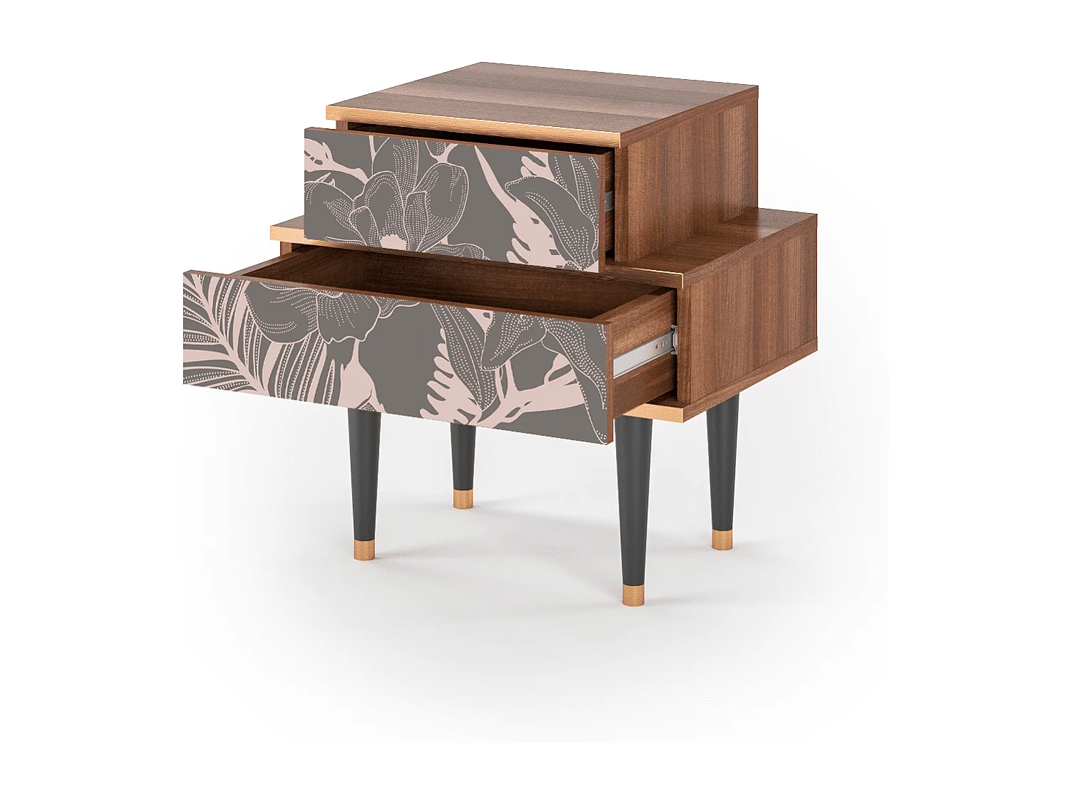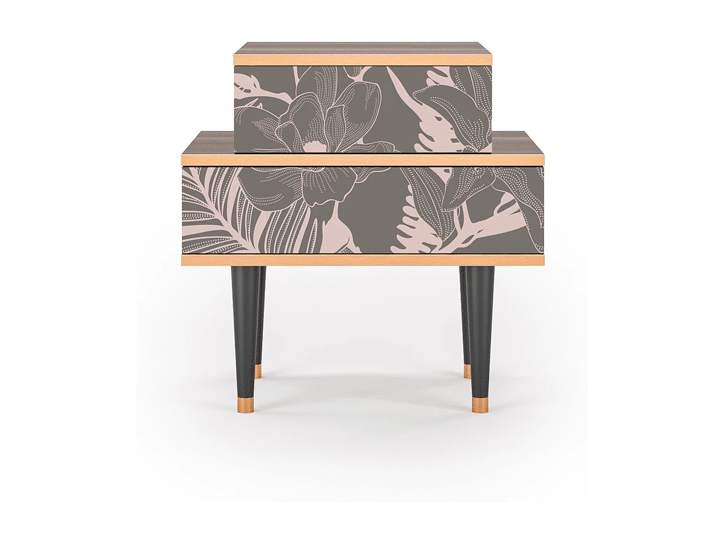 Stolik nocny - 58х58х41 cm - NS1 - Peach Peonies, Orzech