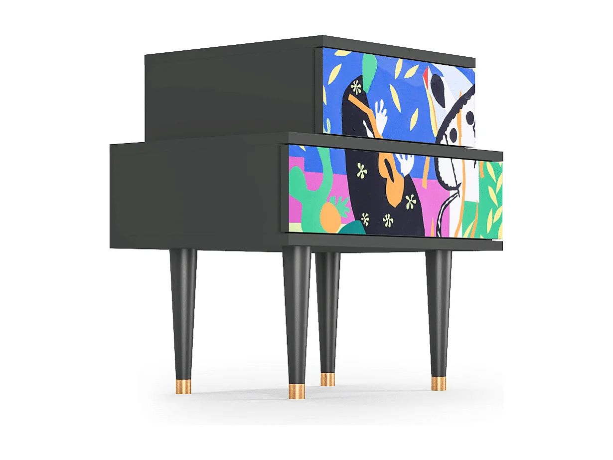 Stolik nocny - 58х58х41 cm - NS1 - Dark Peonies, Antracyt