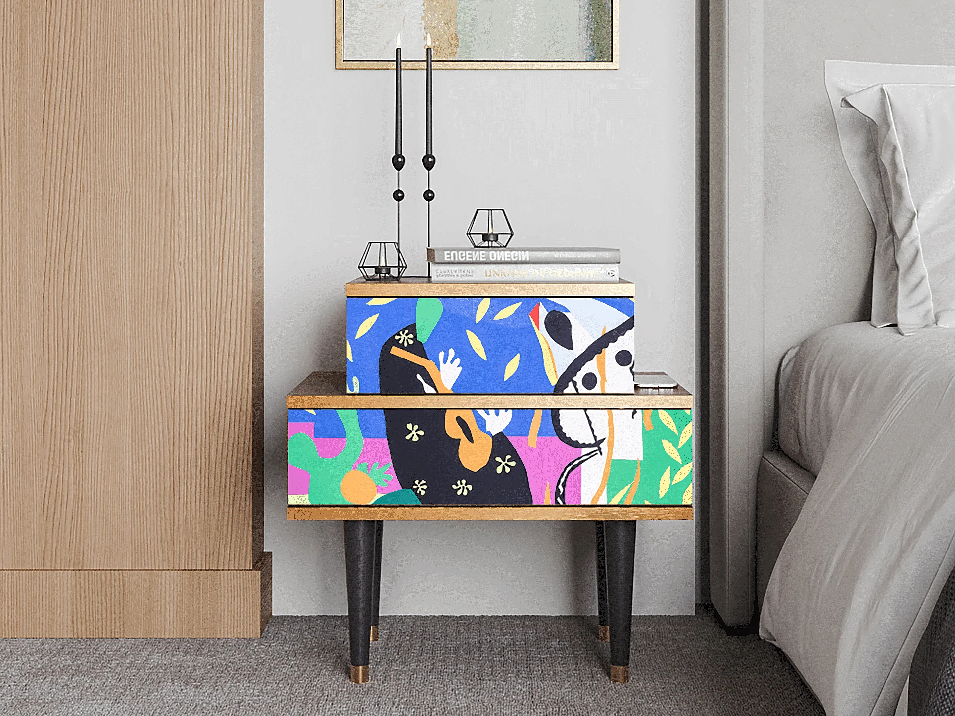 Stolik nocny - 58х58х41 cm - NS1 - Jungles in Paris, Orzech