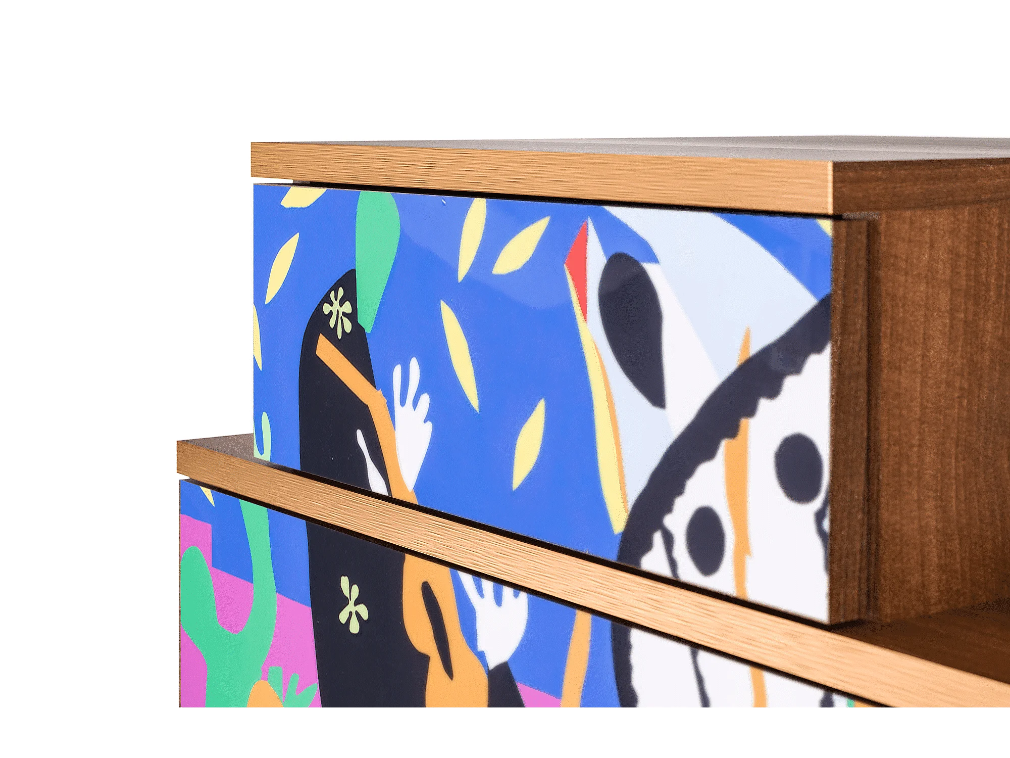 Stolik nocny - 58х58х41 cm - NS1 - Blood by James Jean, Orzech