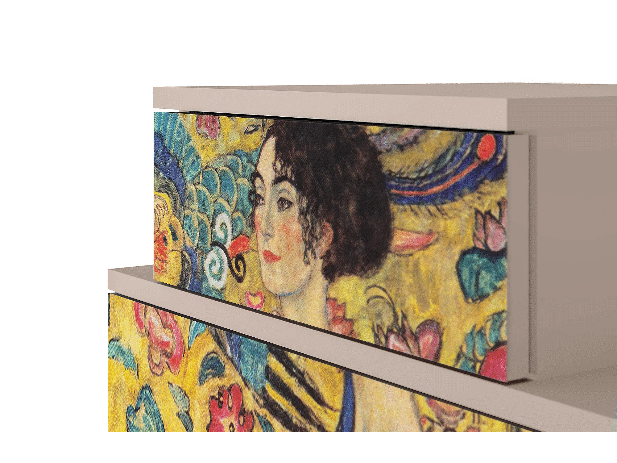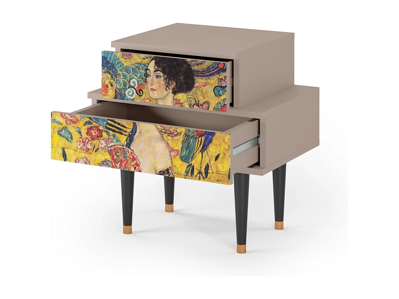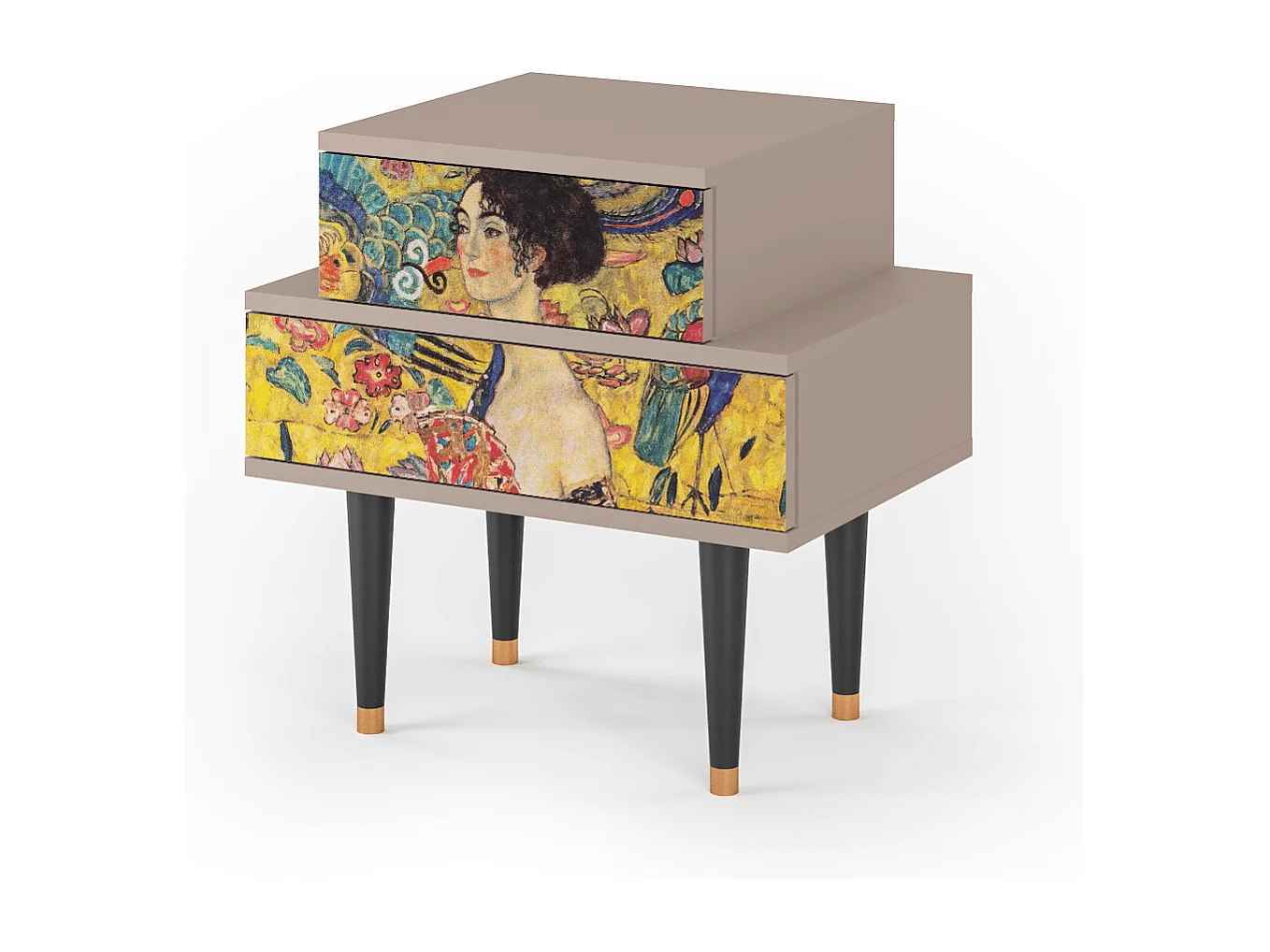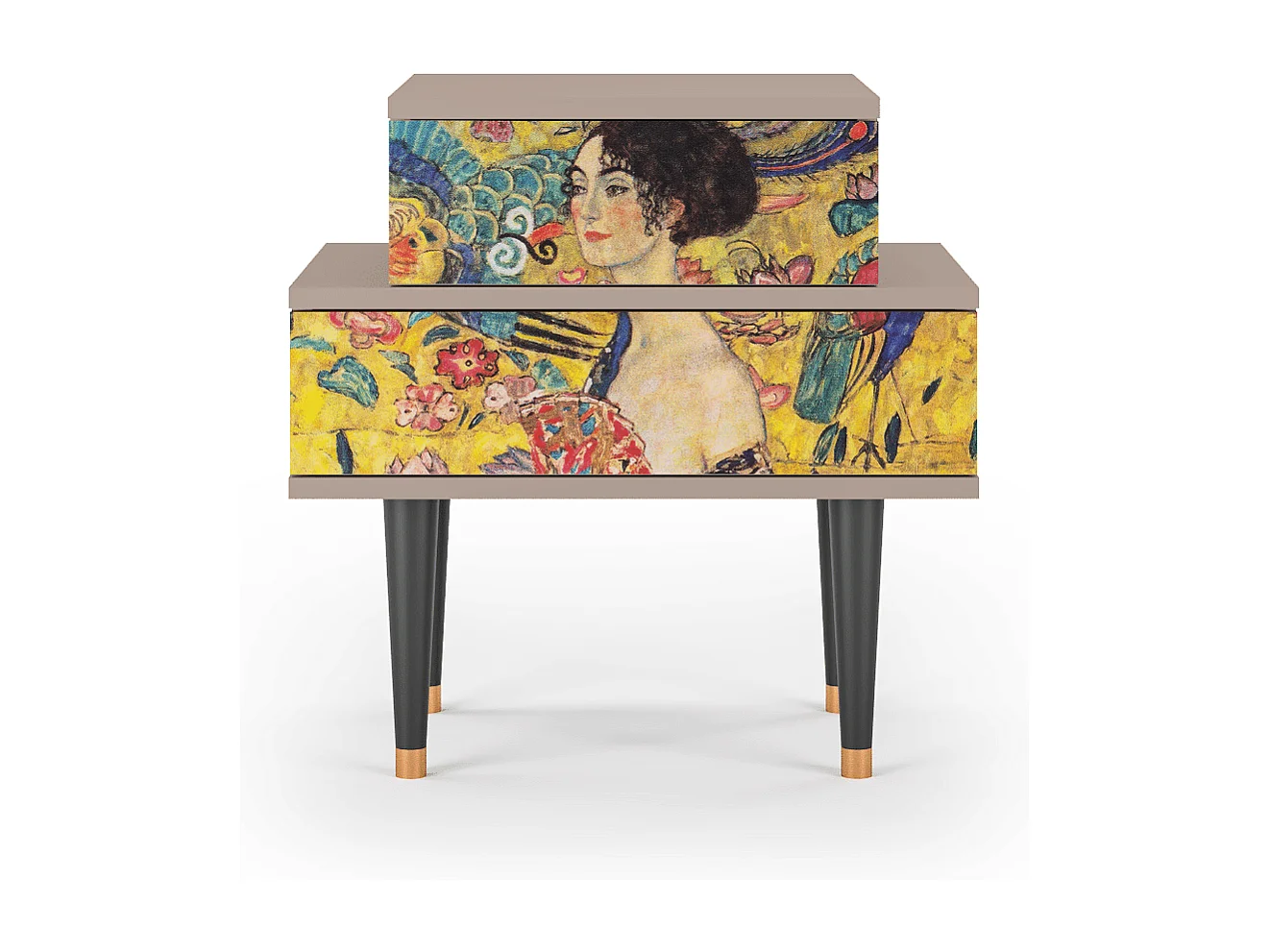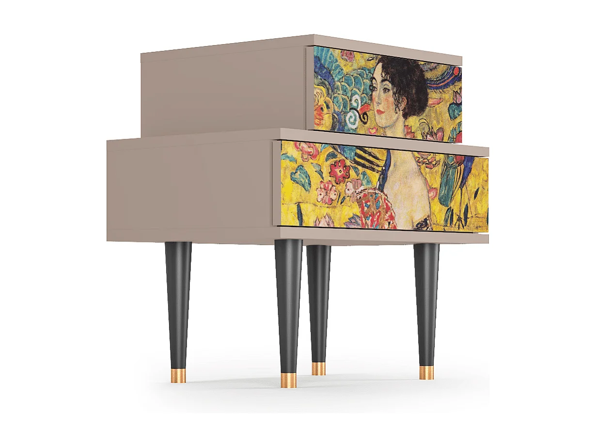 Stolik nocny - 58х58х41 cm - NS1 - Lady with Fan by Klimt, Latte