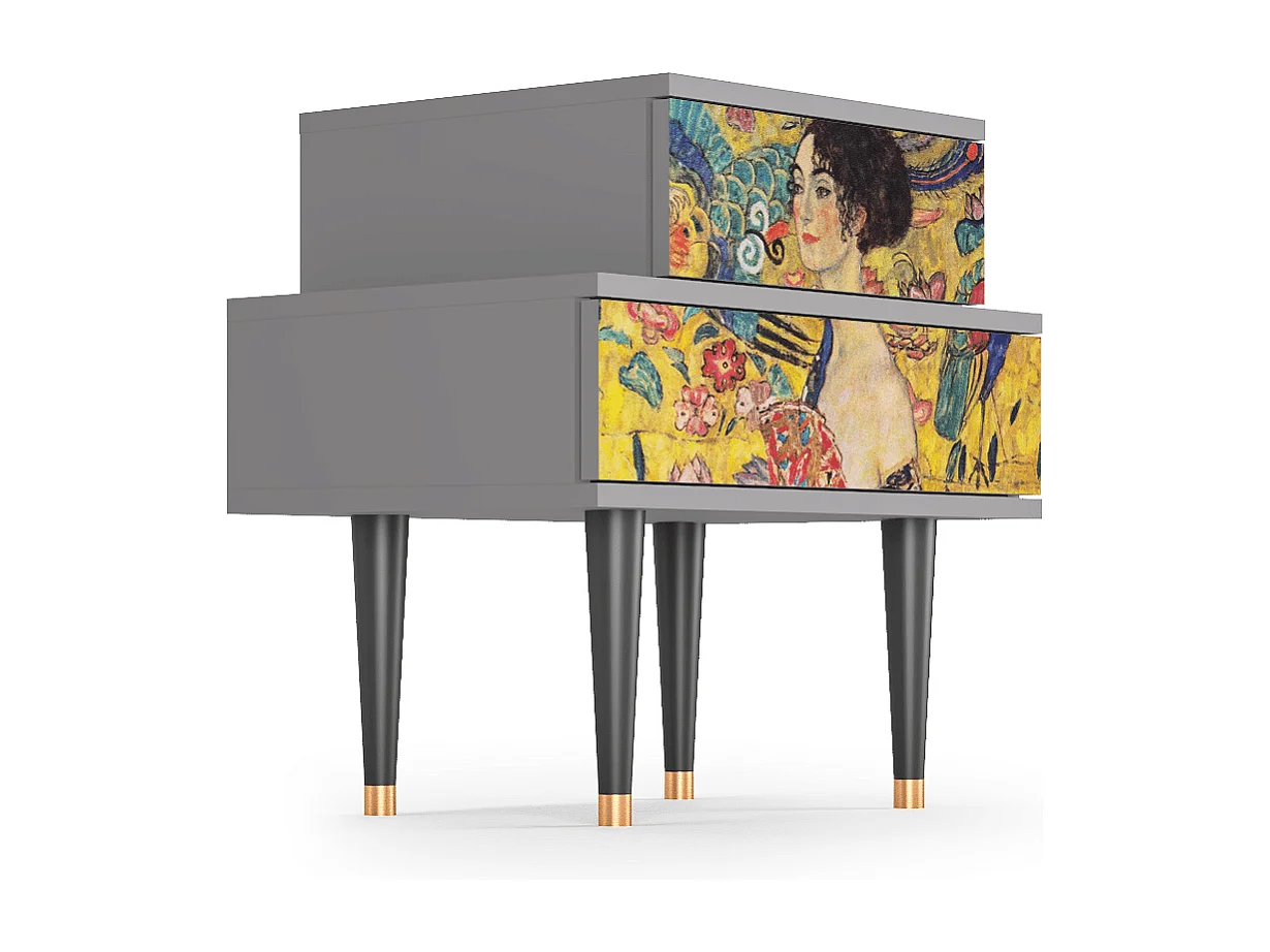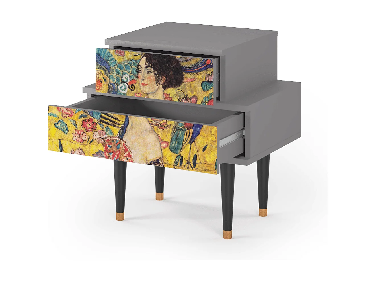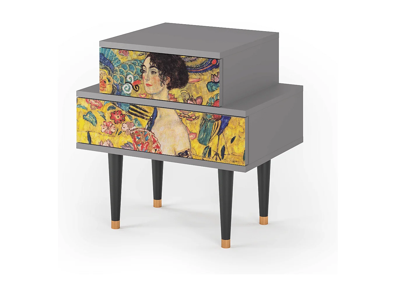 Stolik nocny - 58х58х41 cm - NS1 - Lady with Fan by Klimt, Szary