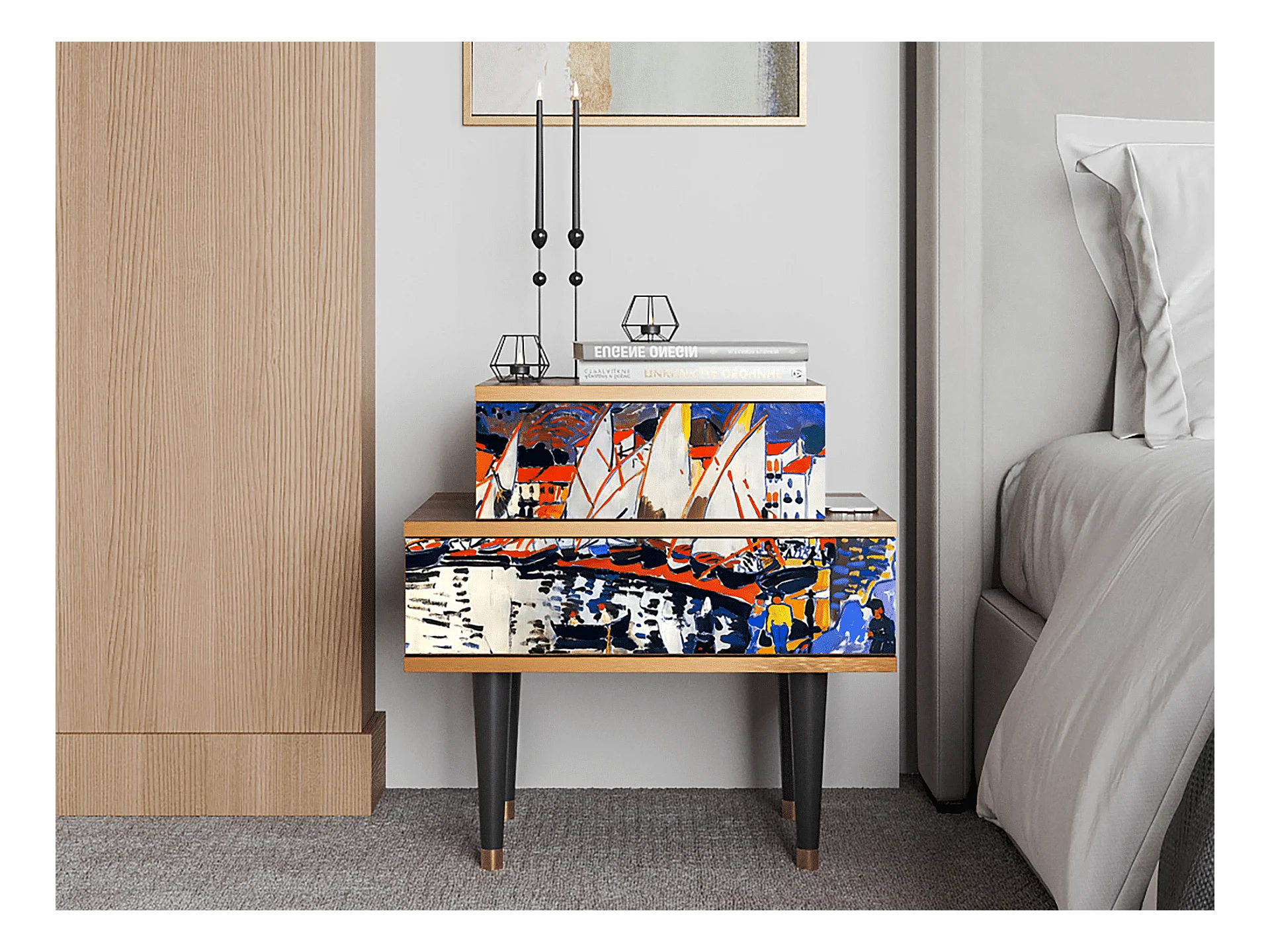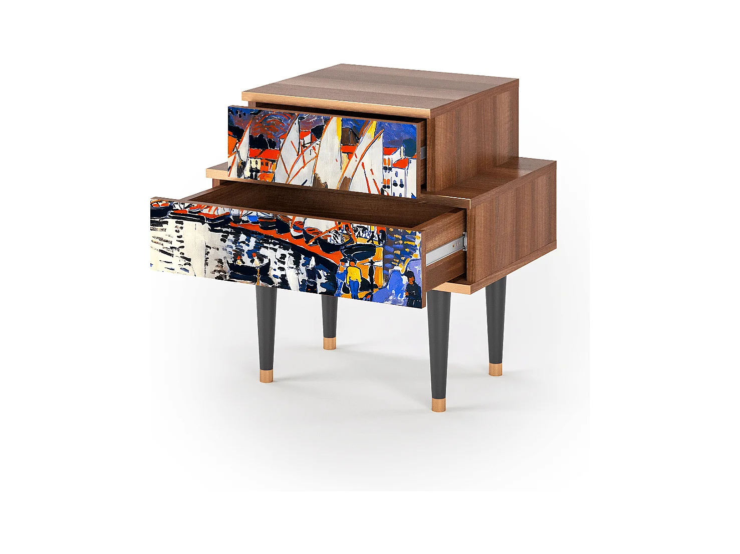 Stolik nocny - 58х58х41 cm - NS1 - Le Séchage des voiles , Orzech
