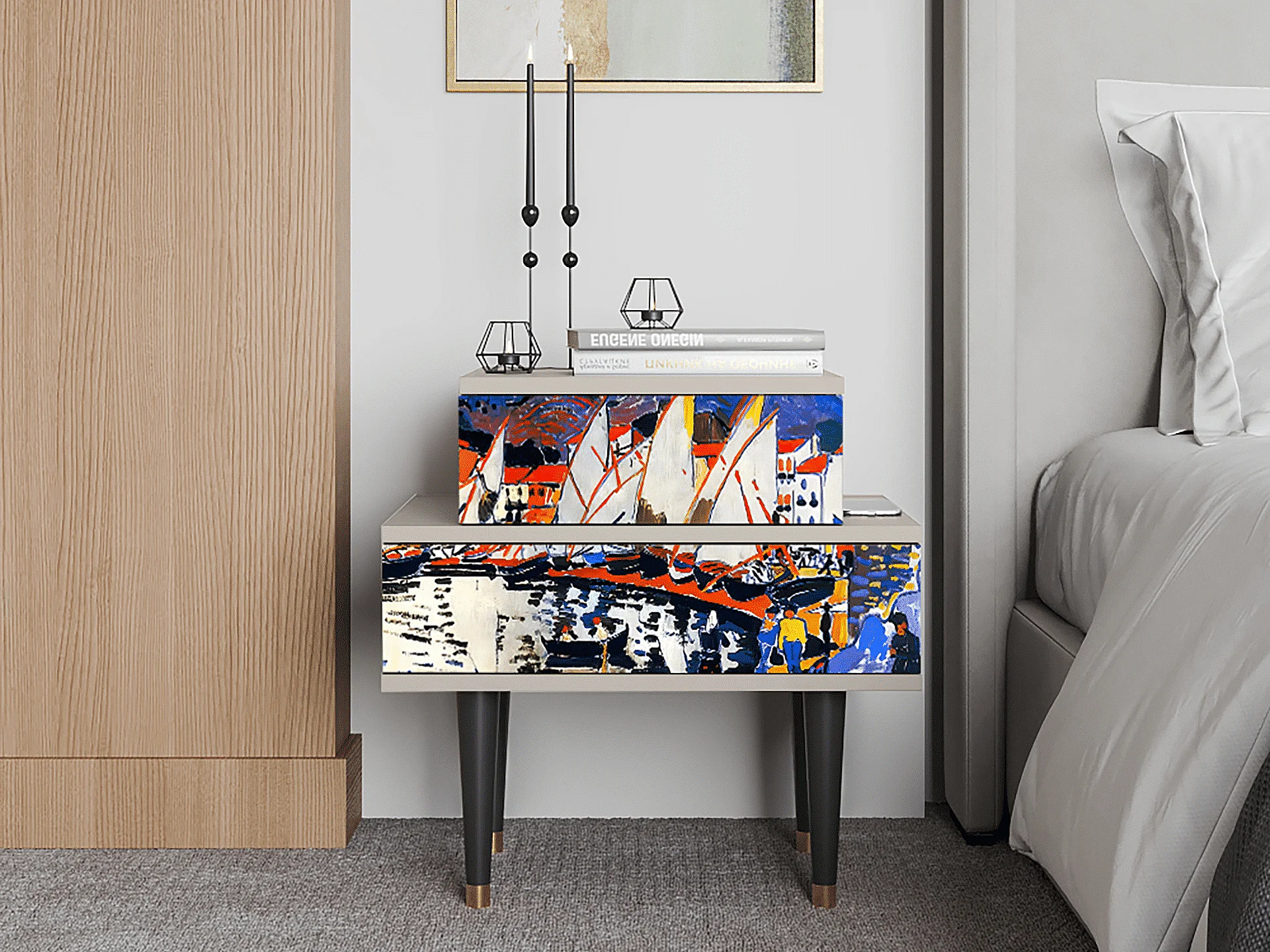 Stolik nocny - 58х58х41 cm - NS1 - Le Séchage des voiles , Piaskowy