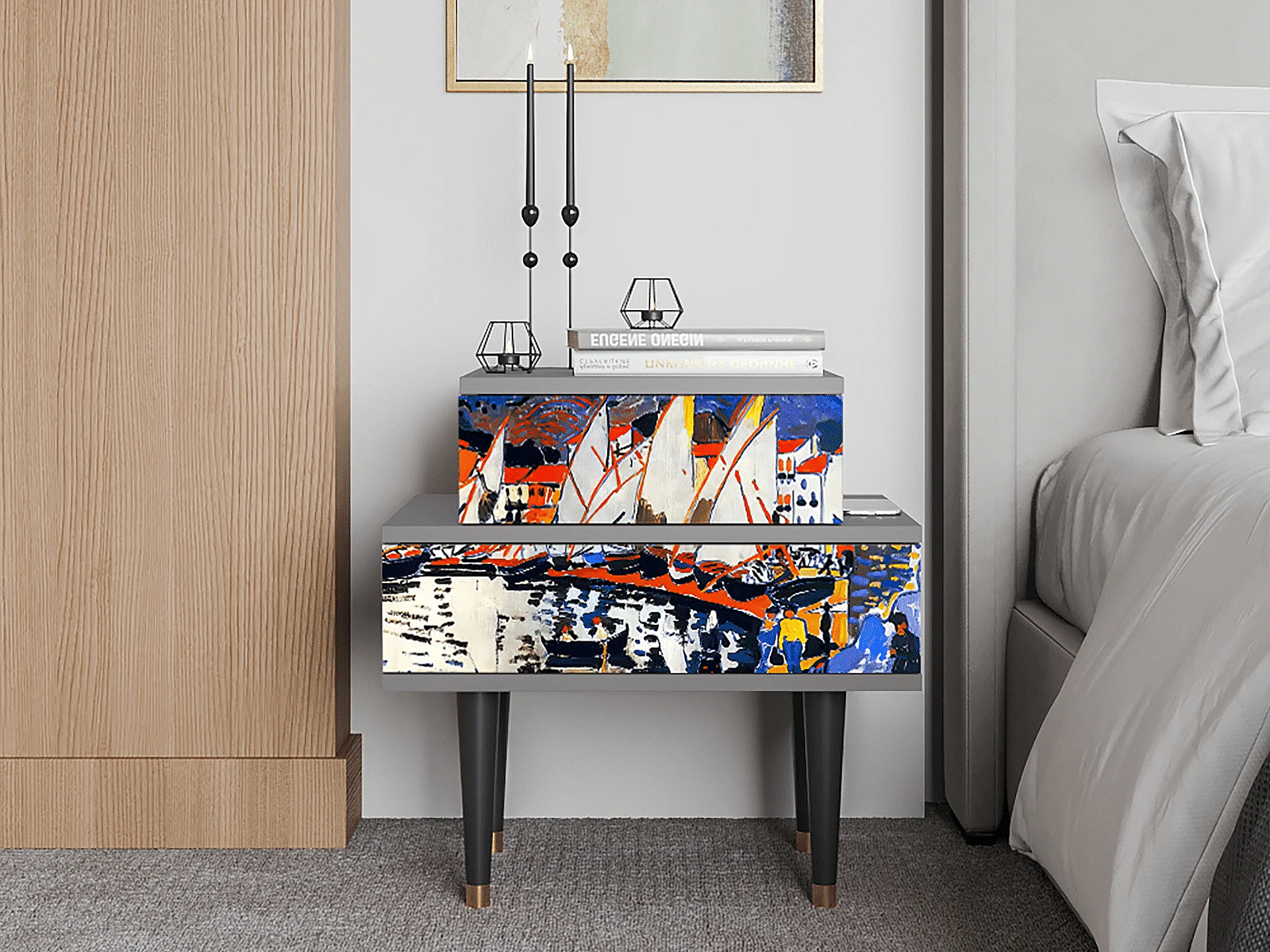 Stolik nocny - 58х58х41 cm - NS1 - Le Séchage des voiles , Szary