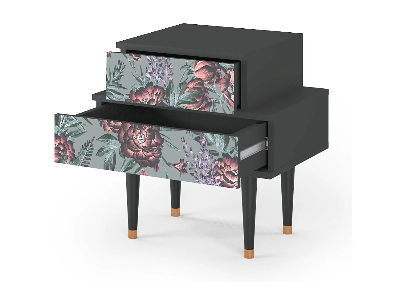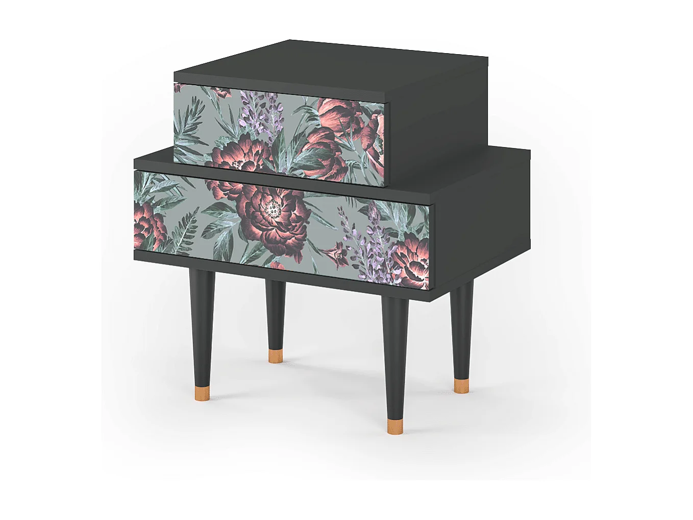 Stolik nocny - 58х58х41 cm - NS1 - Dark Peonies, Antracyt