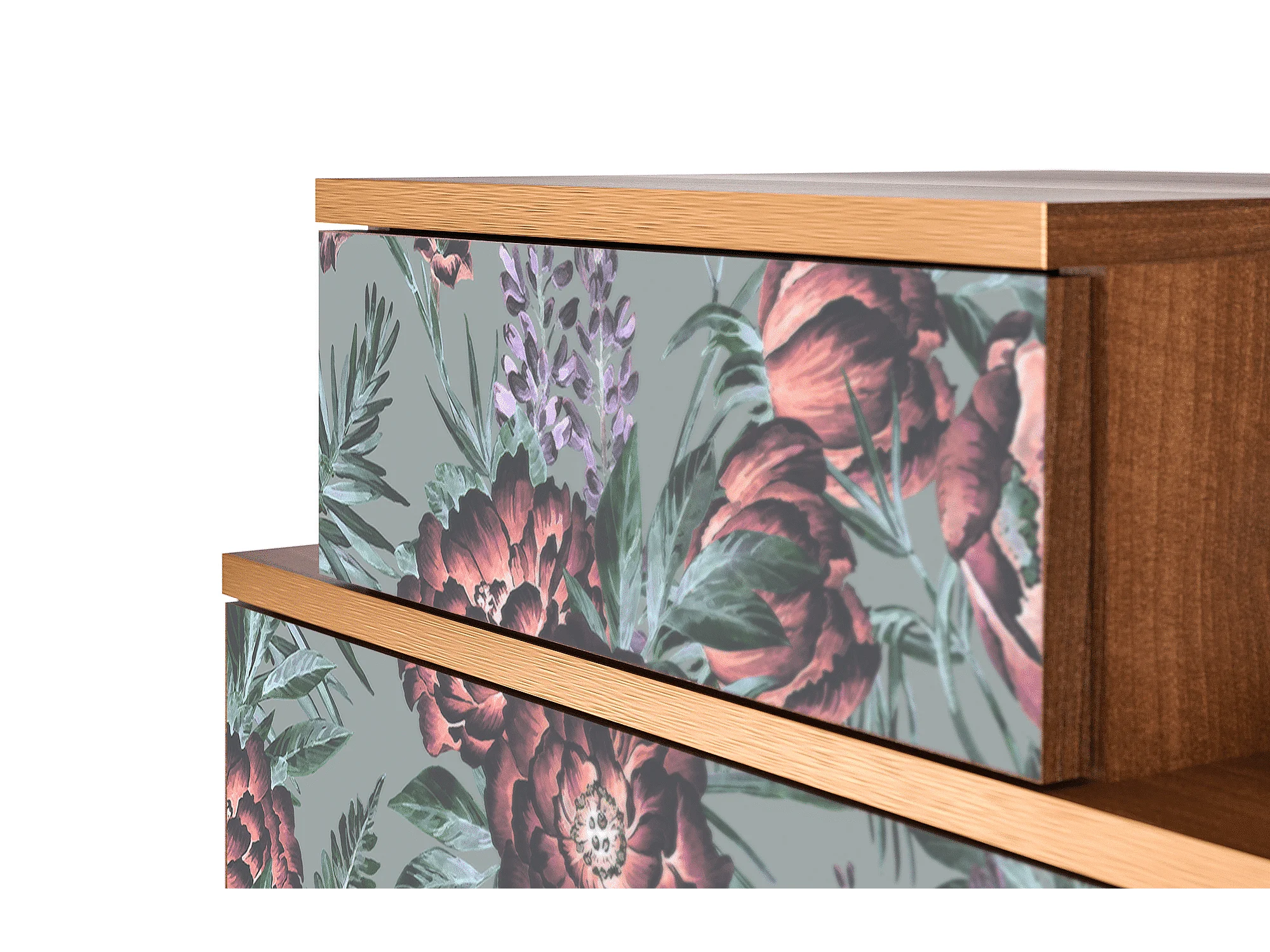 Stolik nocny - 58х58х41 cm - NS1 - Peach Peonies, Orzech