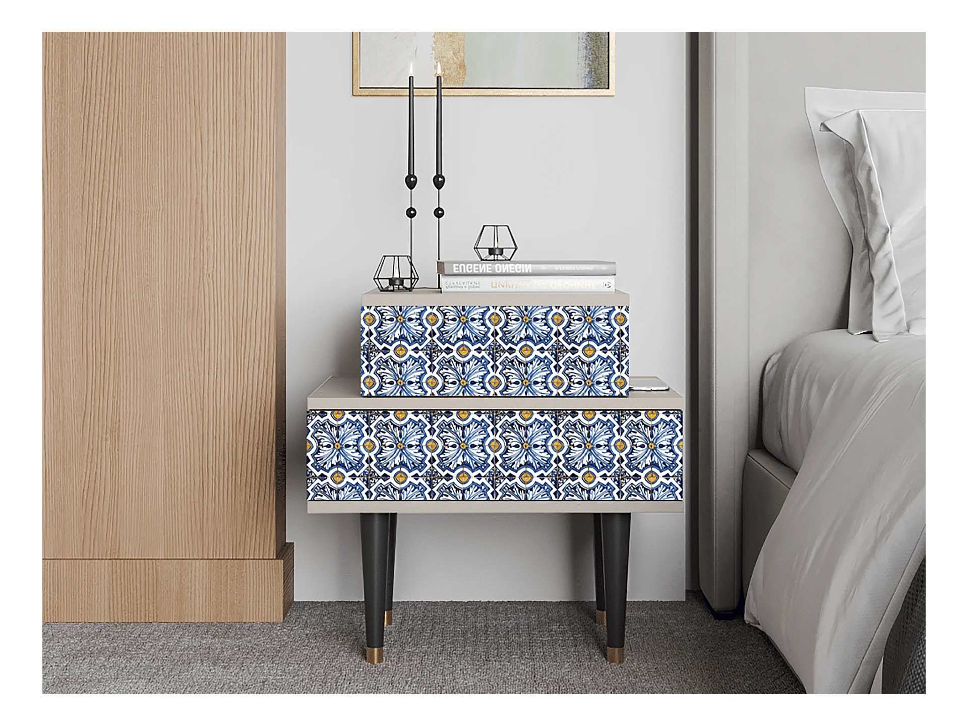 Stolik nocny - 58х58х41 cm - NS1 - Lovely Cornflowers, Piaskowy