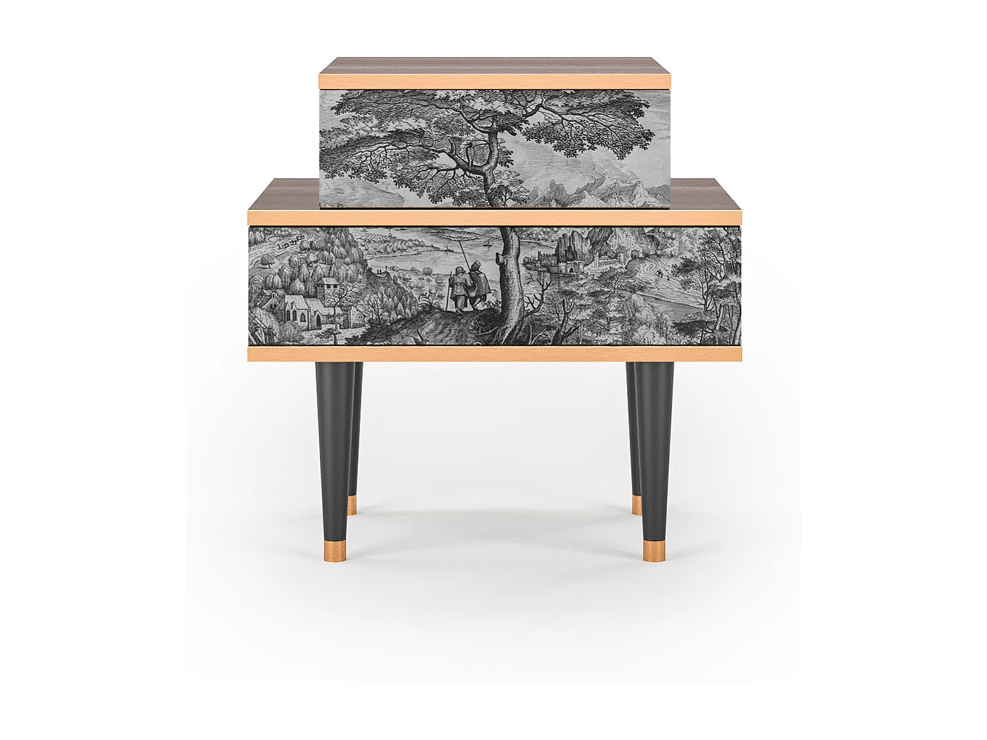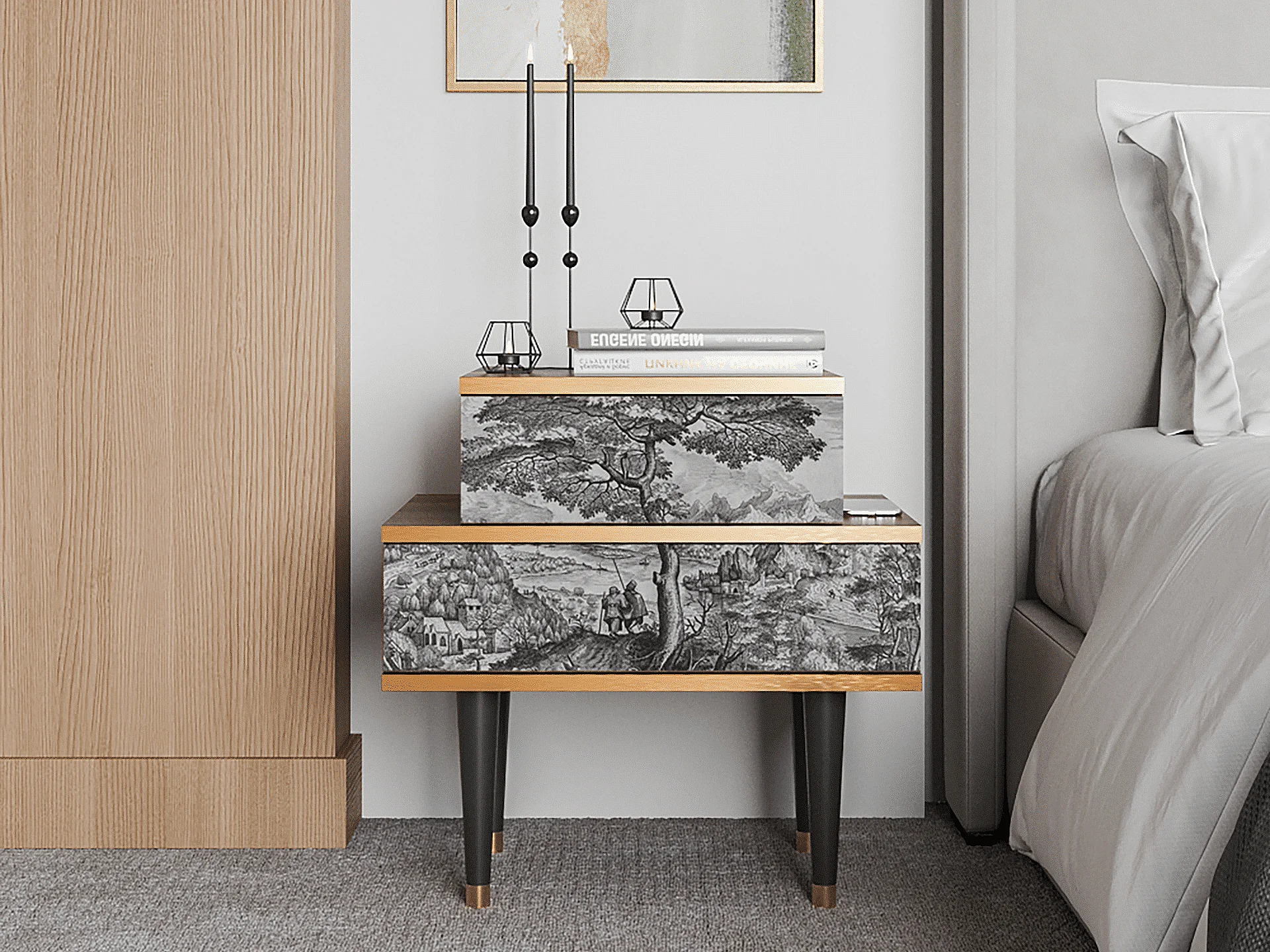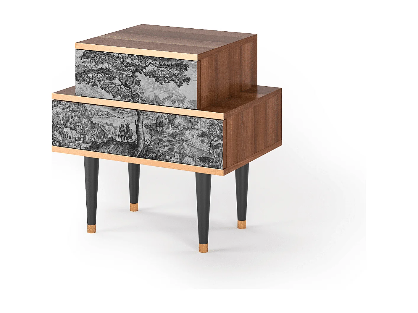Stolik nocny - 58х58х41 cm - NS1 - Gingko leaves, Orzech