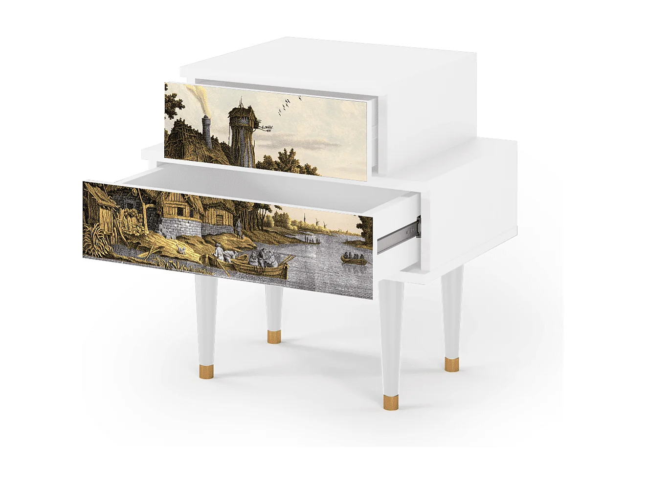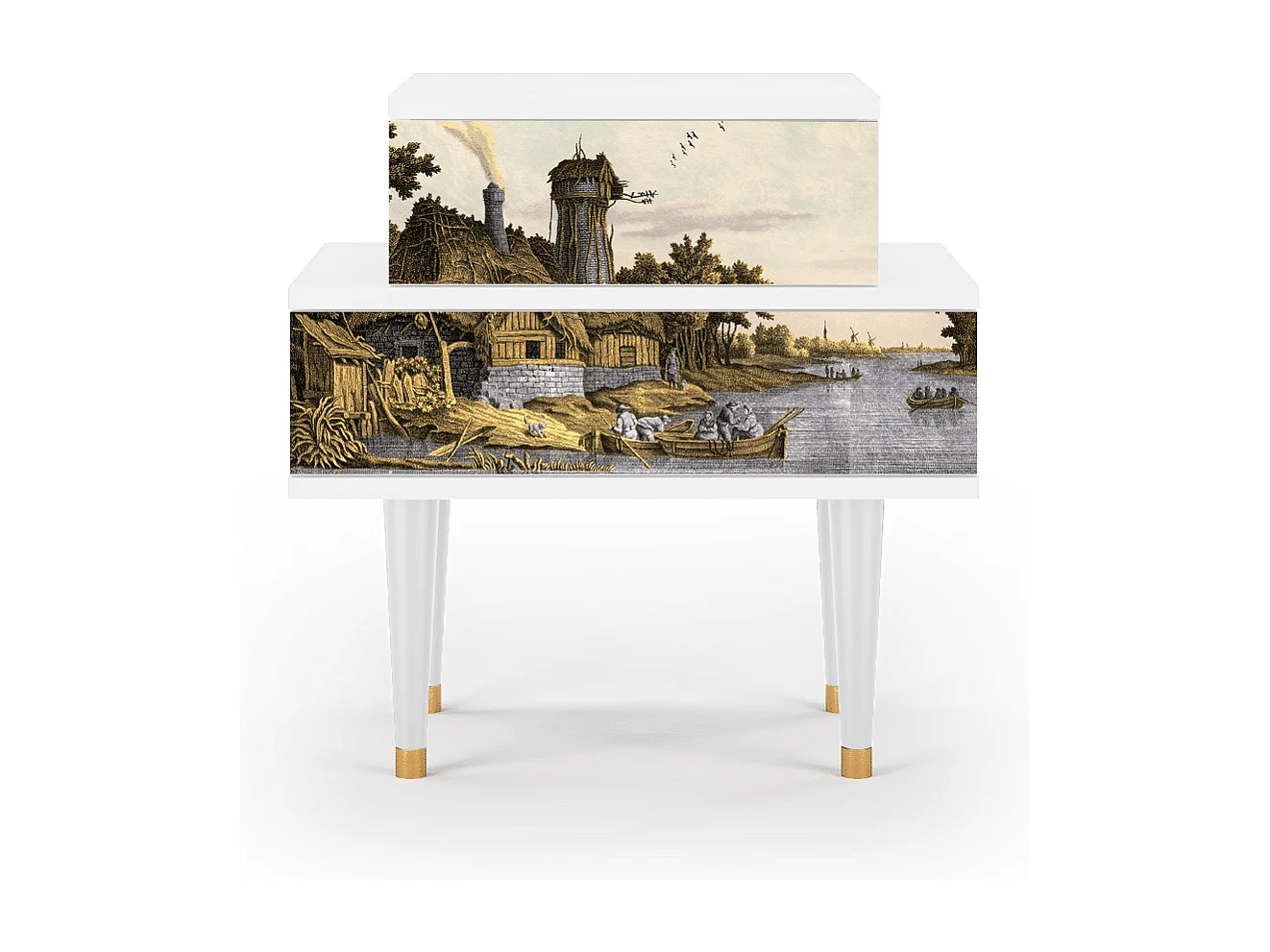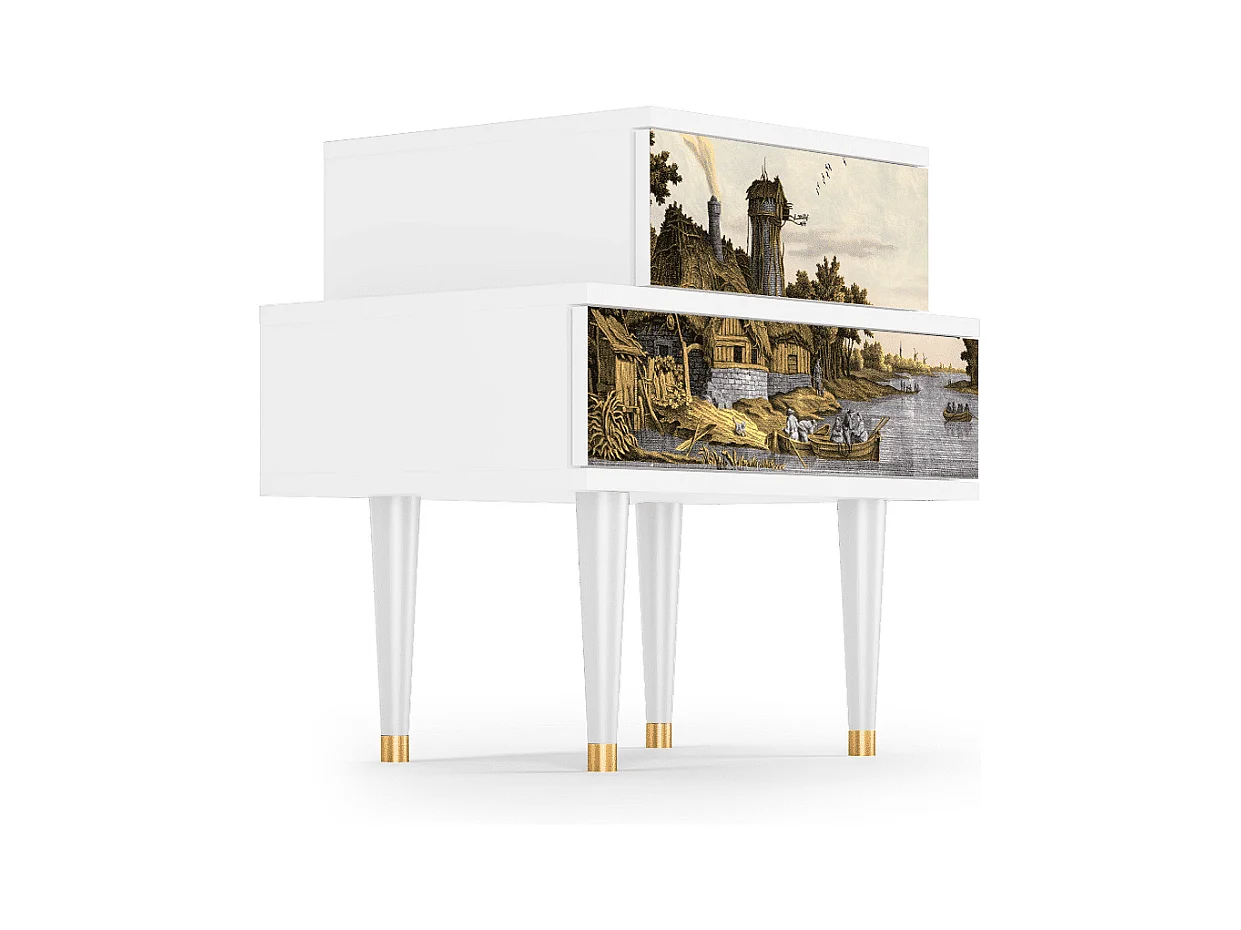 Stolik nocny - 58х58х41 cm - NS1 - Mill along a River, Biały