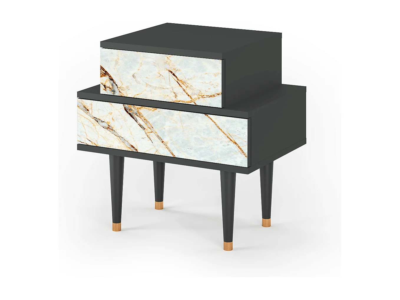 Stolik nocny - 58х58х41 cm - NS1 - Piaskowyy Marble, Antracyt