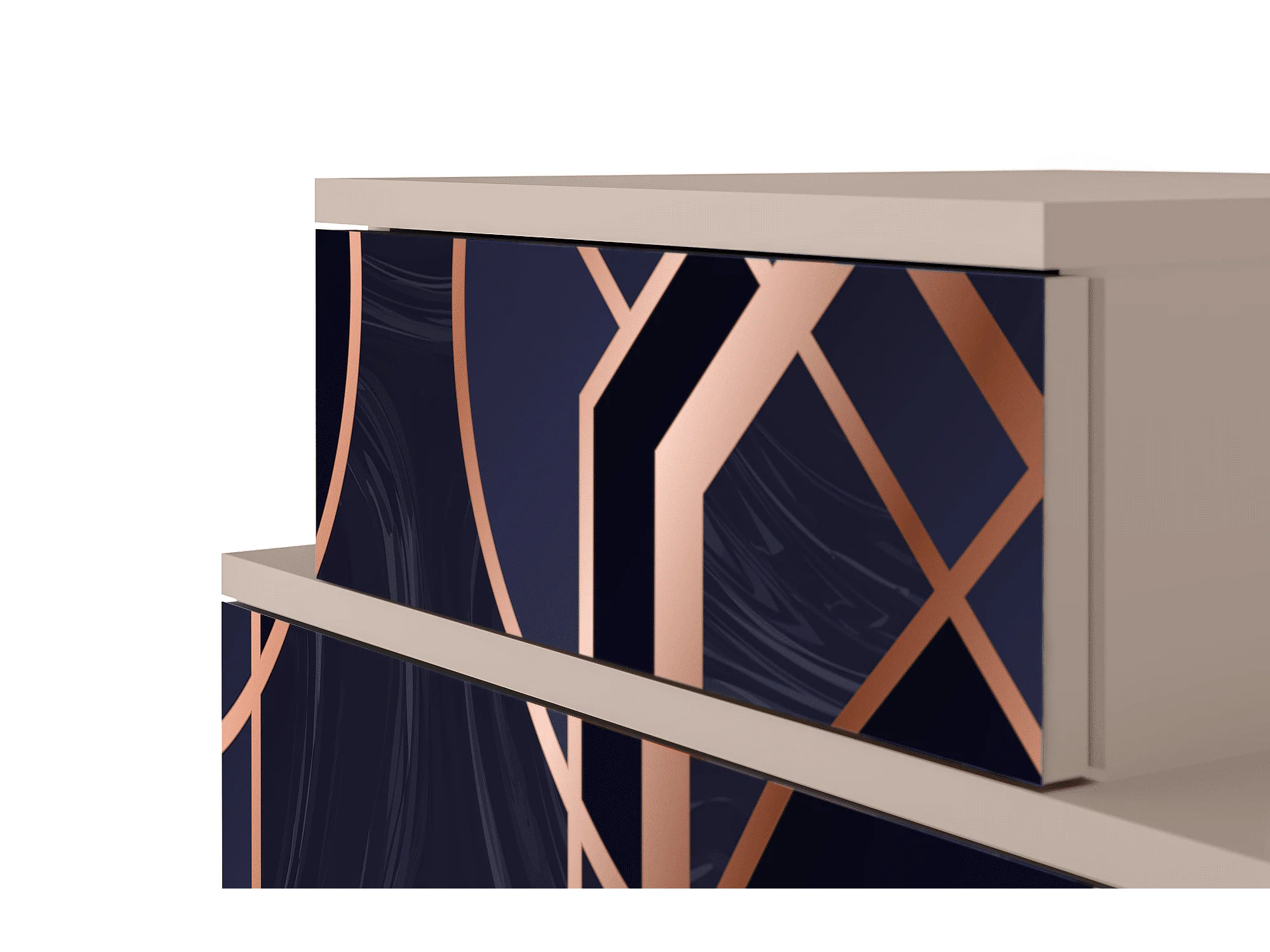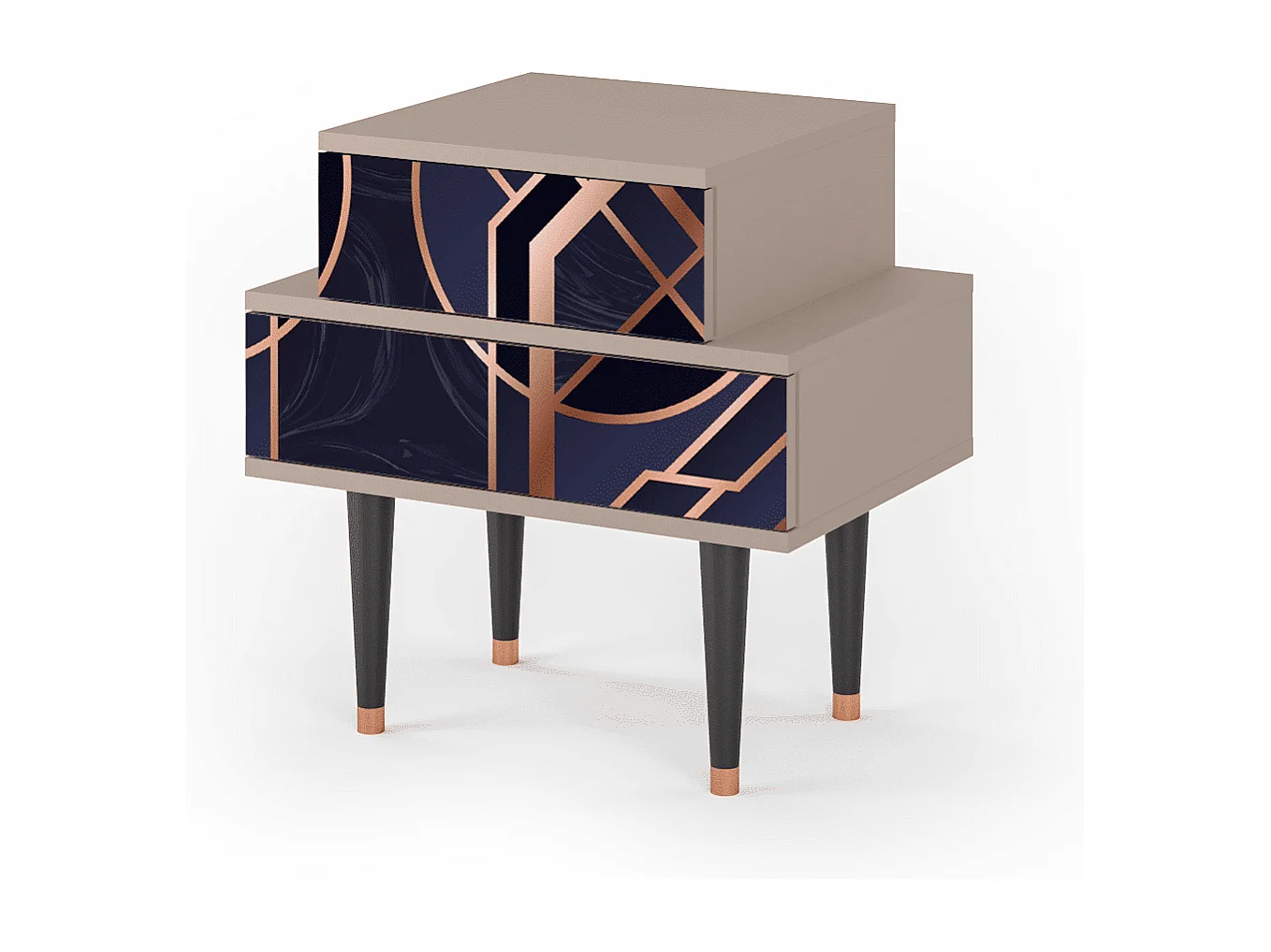 Stolik nocny - 58х58х41 cm - NS1 - Gold Ginkgo, Latte