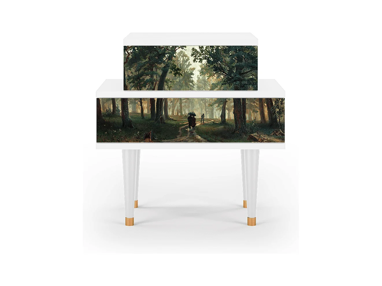 Stolik nocny - 58х58х41 cm - NS1 - Rain in the Oak Forest, Biały