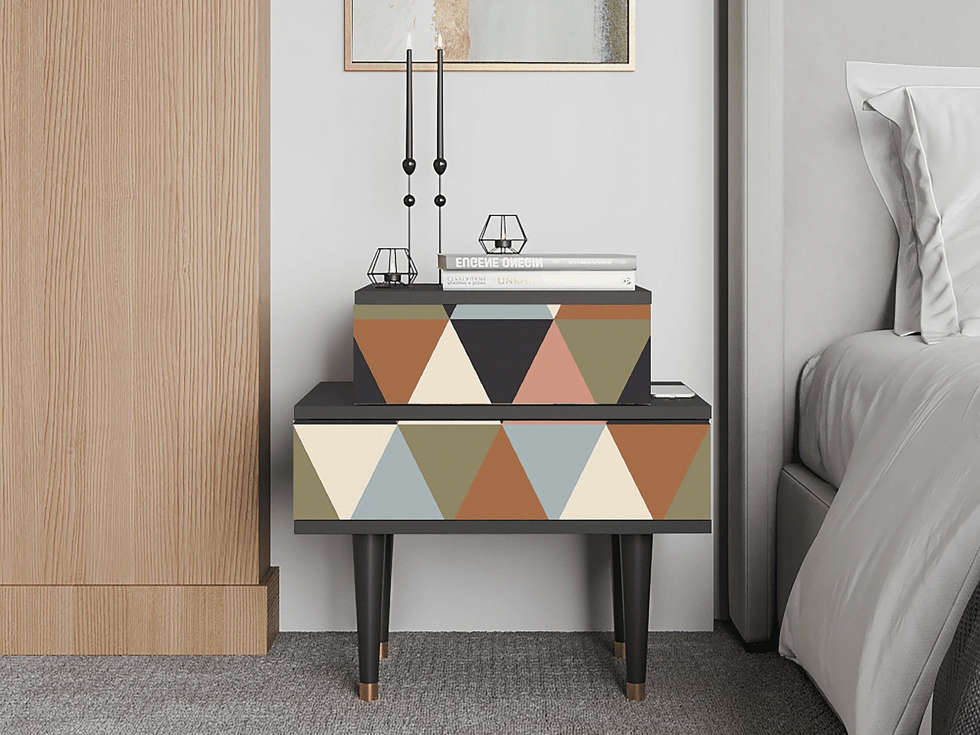 Stolik nocny - 58х58х41 cm - NS1 - Royal Triangles, Antracyt