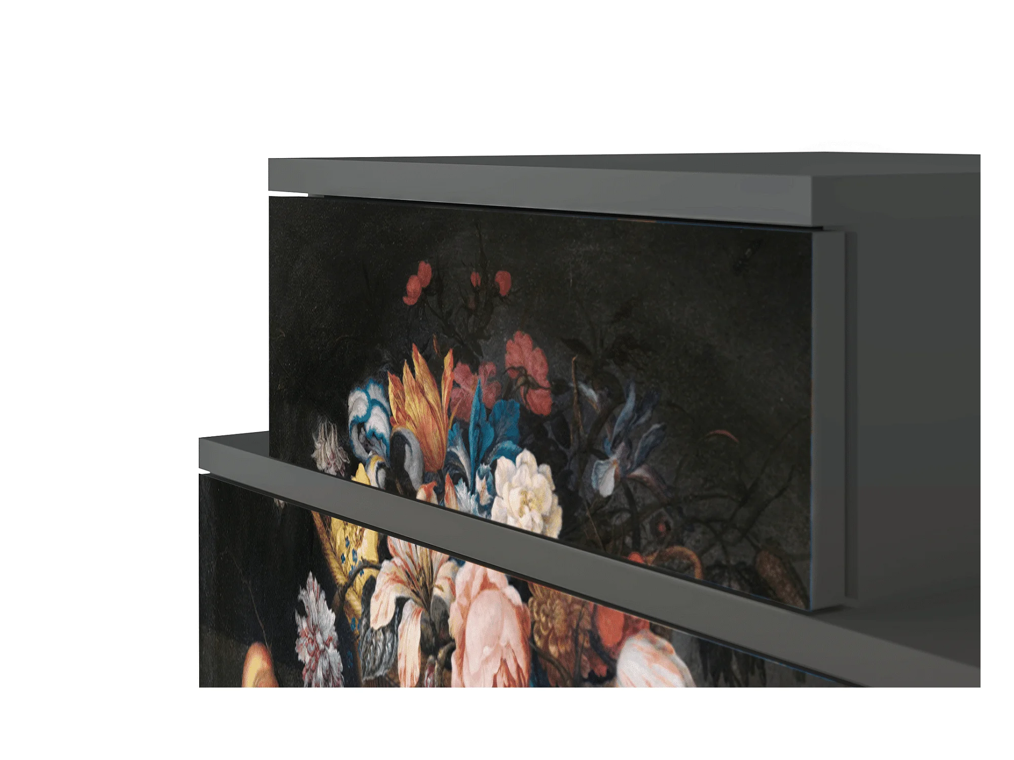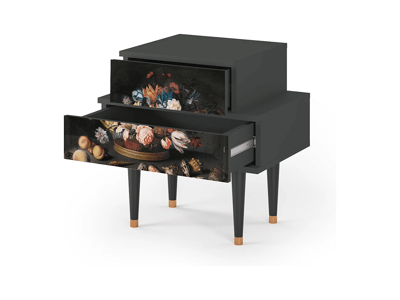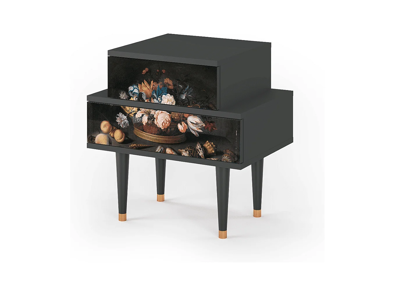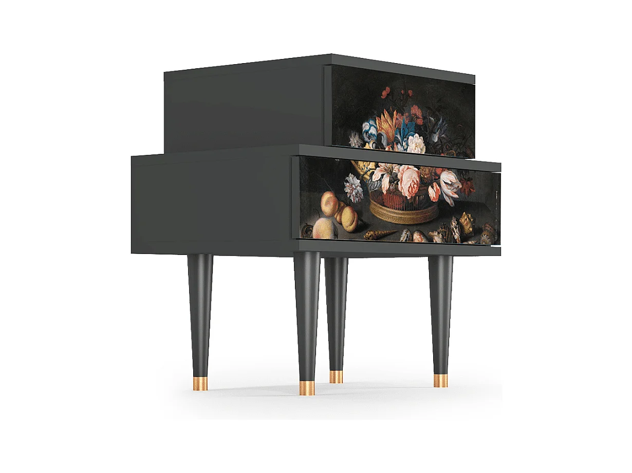 Stolik nocny - 58х58х41 cm - NS1 - Still Life with Flowers, Antracyt