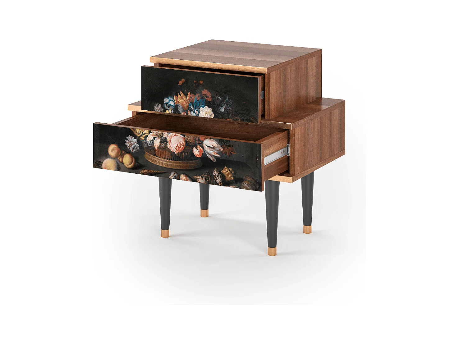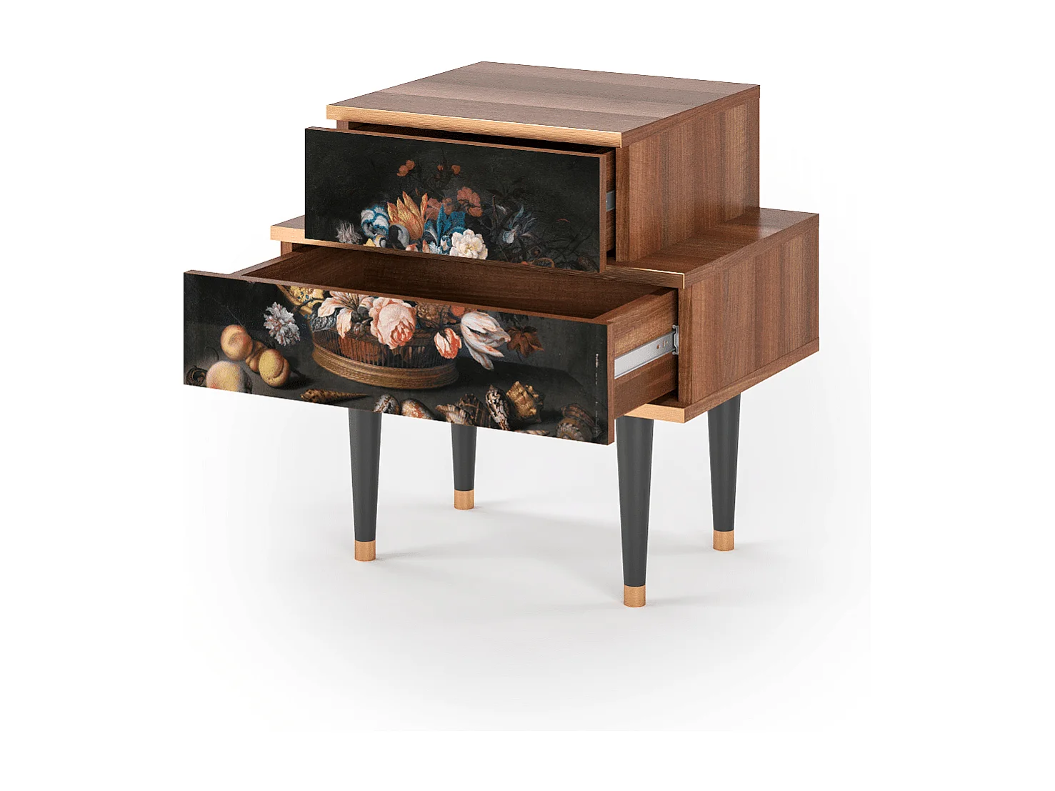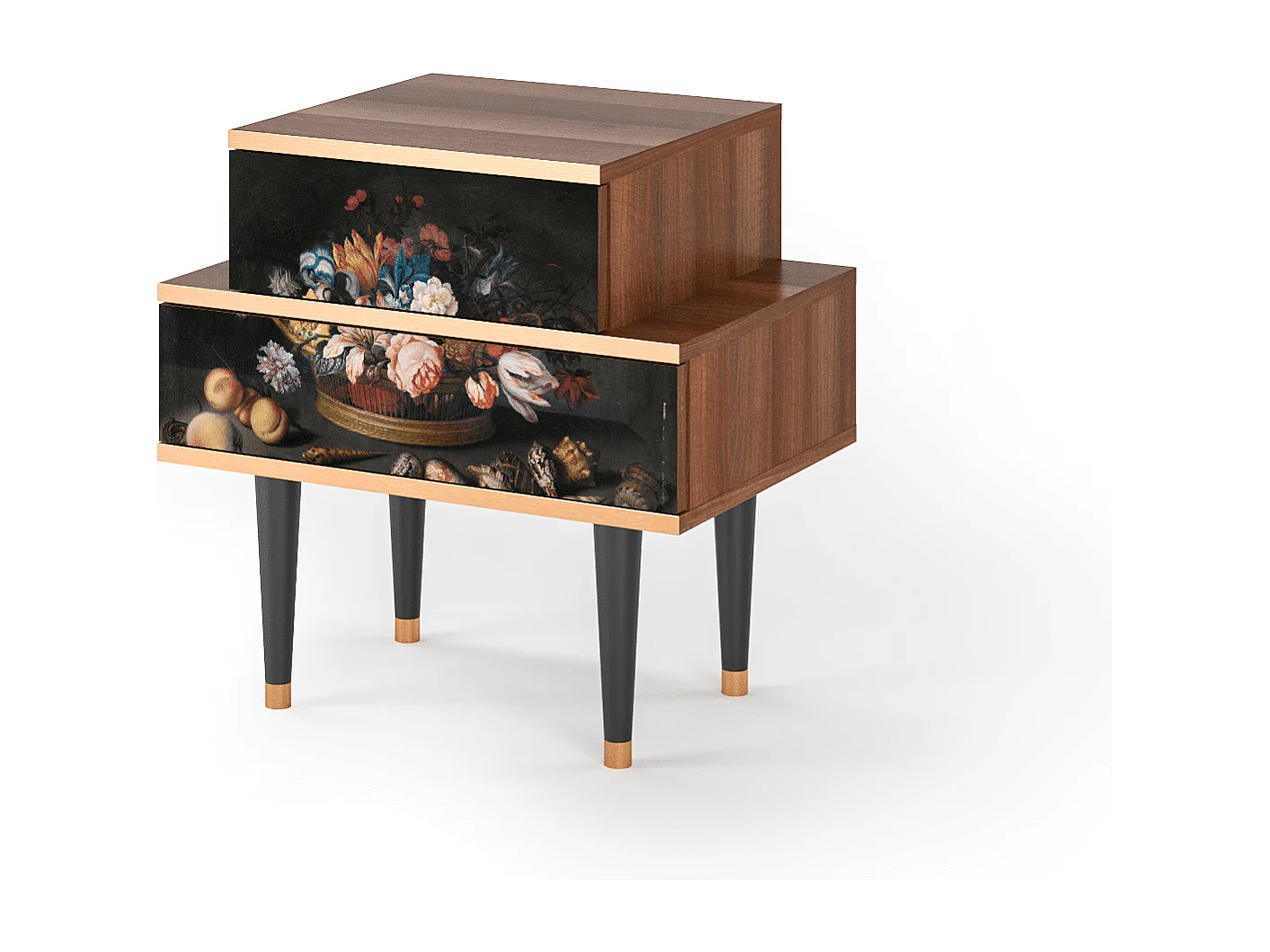 Stolik nocny - 58х58х41 cm - NS1 - Still Life with Flowers, Orzech