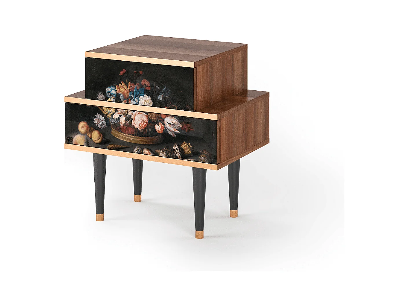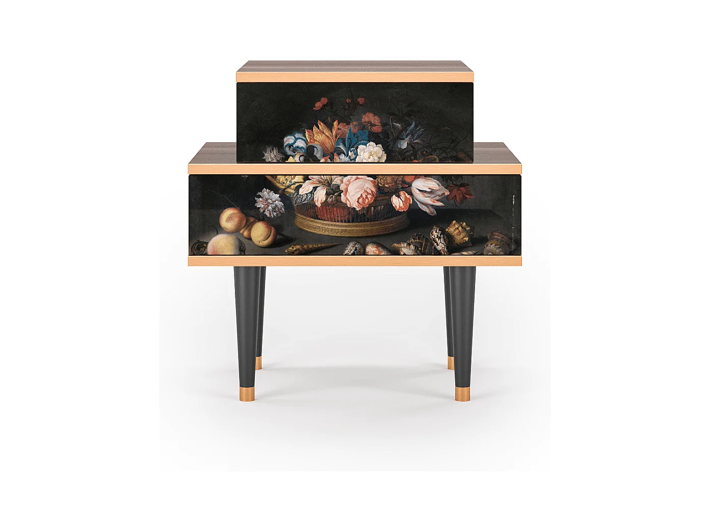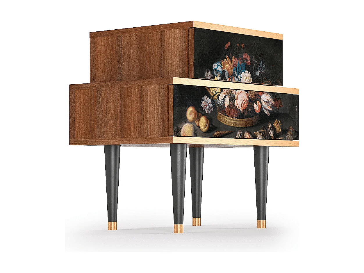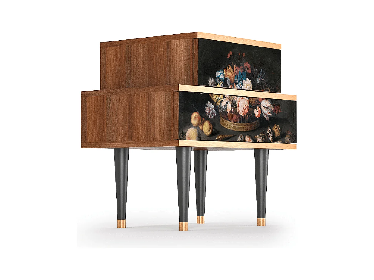 Stolik nocny - 58х58х41 cm - NS1 - Still Life with Flowers, Orzech