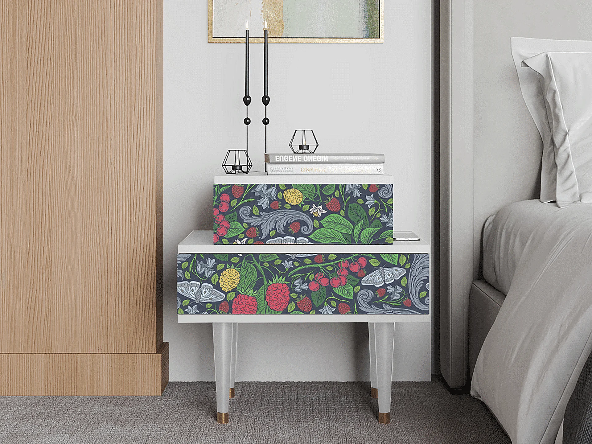 Stolik nocny - 58х58х41 cm - NS1 - Summer Berries, Biały