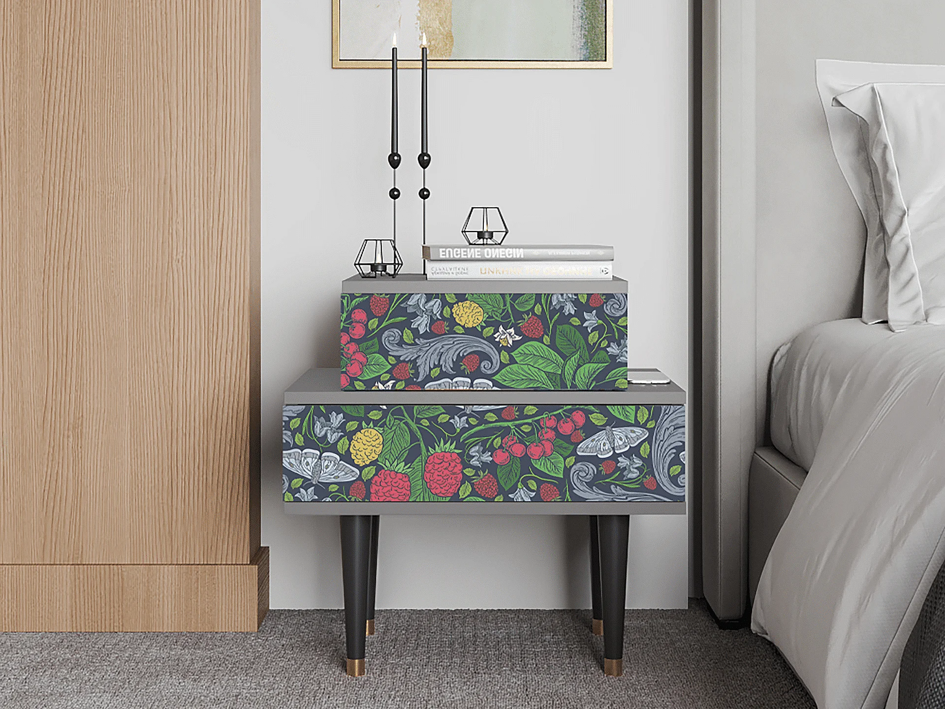 Stolik nocny - 58х58х41 cm - NS1 - Summer Berries, Szary