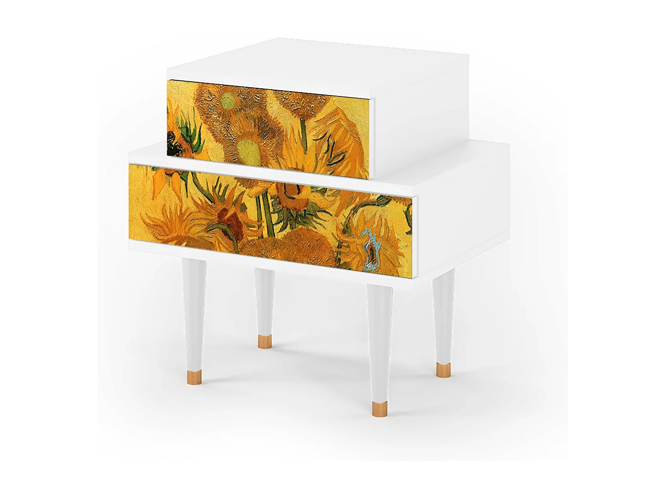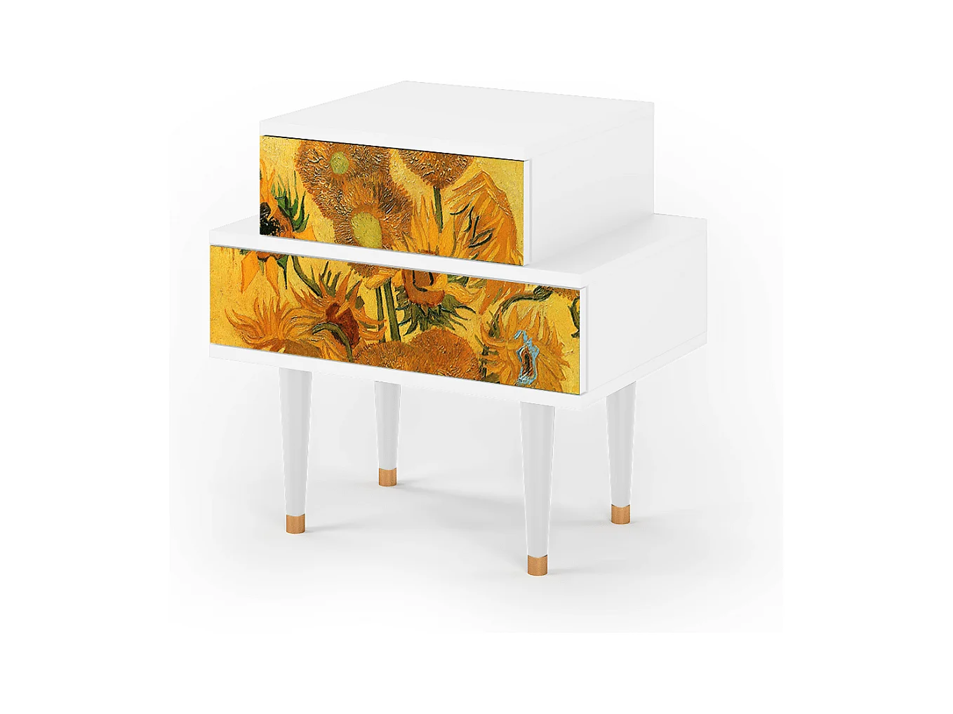 Stolik nocny - 58х58х41 cm - NS1 - Sunflowers, Biały