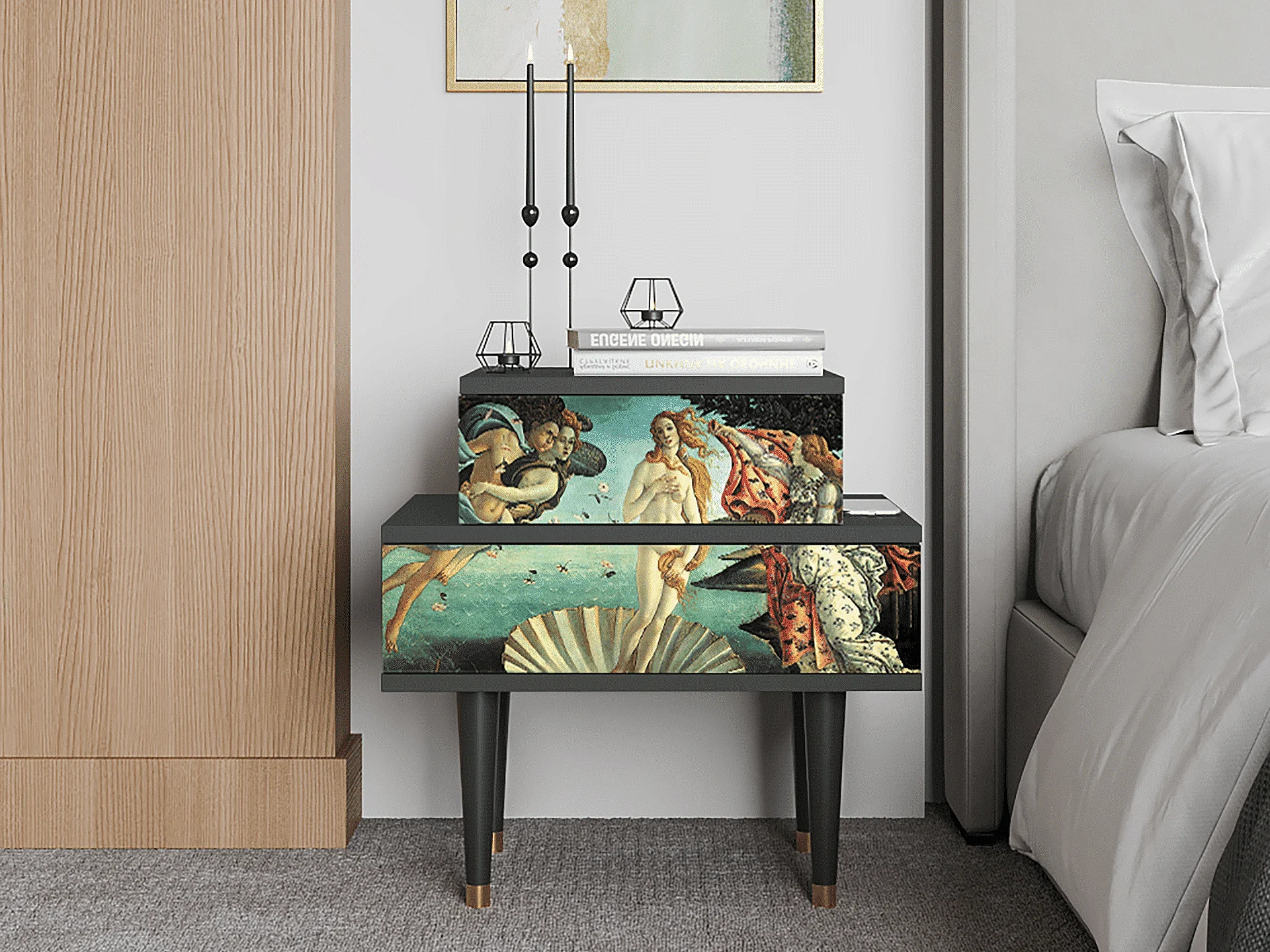 Stolik nocny - 58х58х41 cm - NS1 - The Birth of Venus, Antracyt