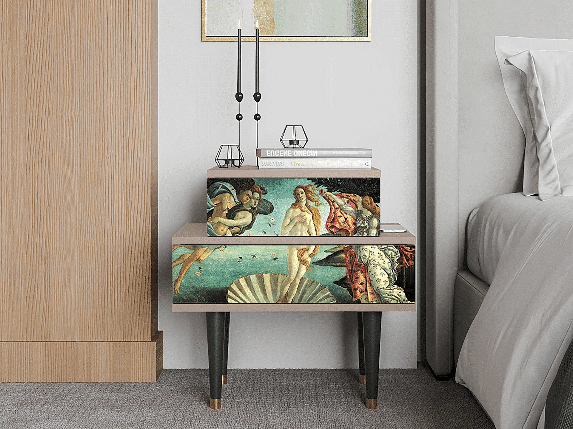 Stolik nocny - 58х58х41 cm - NS1 - The Birth of Venus, Latte