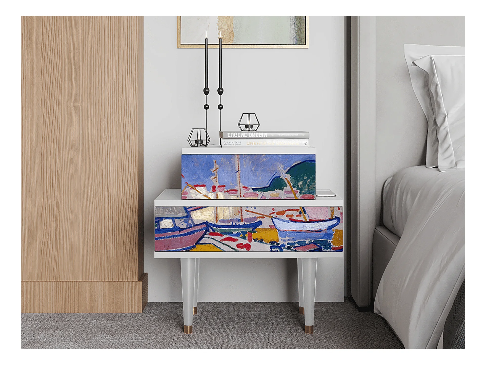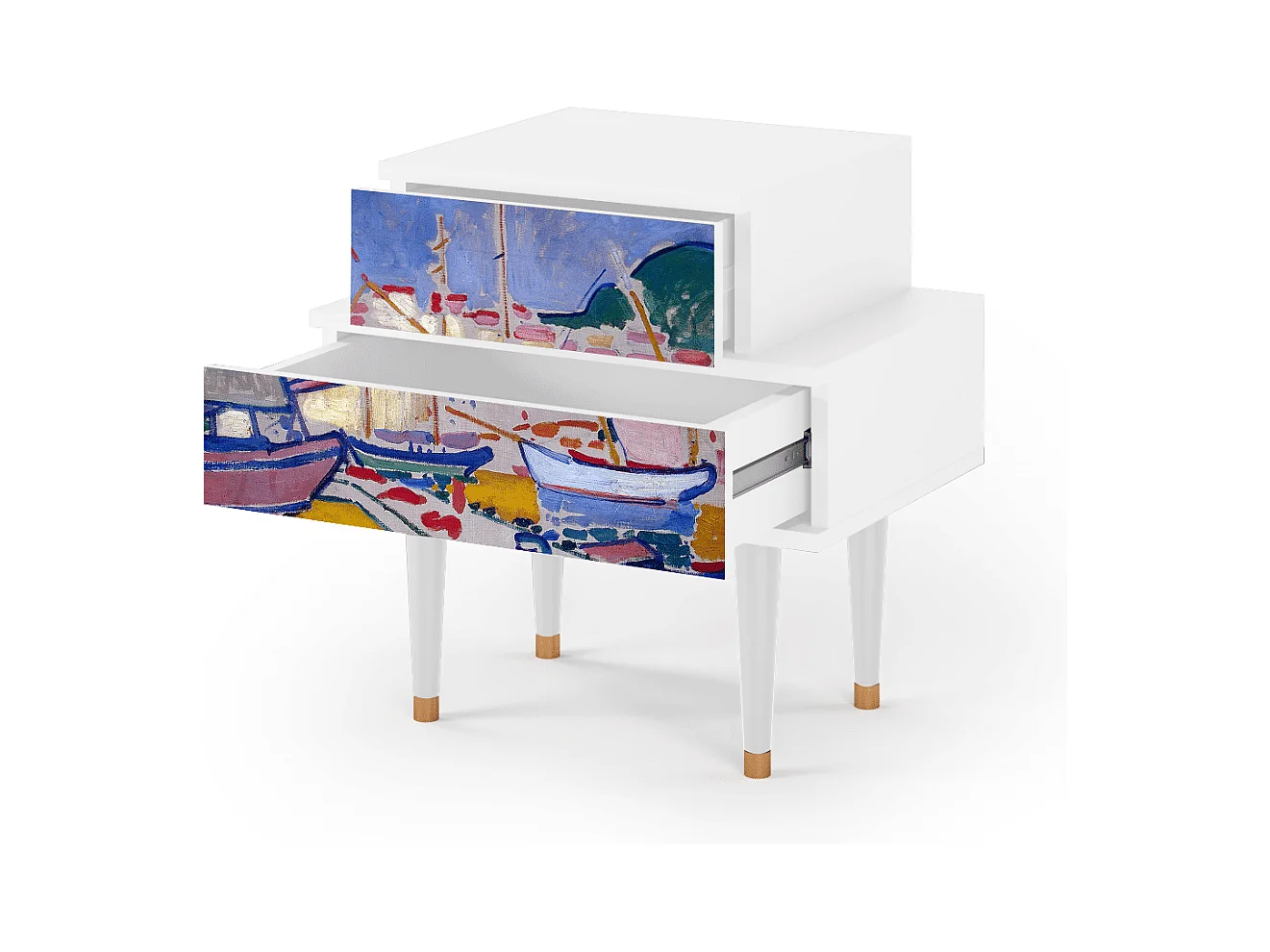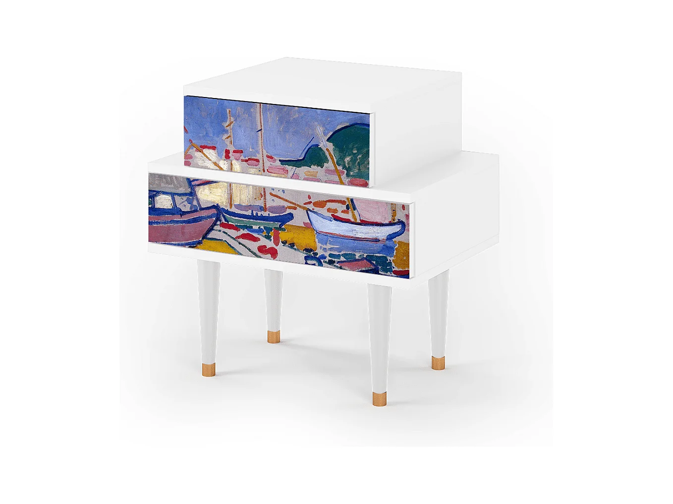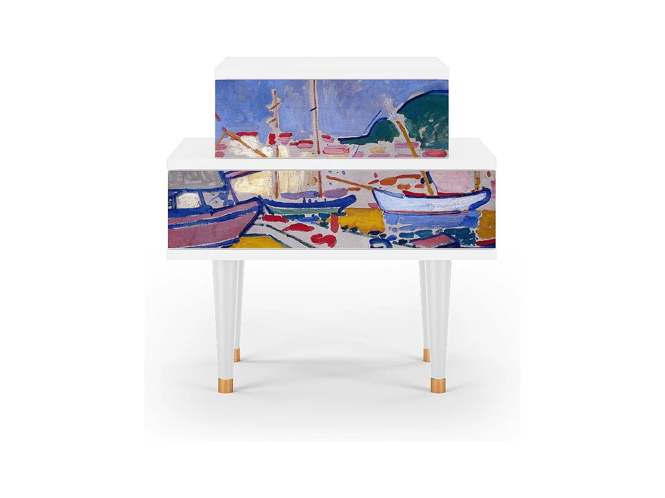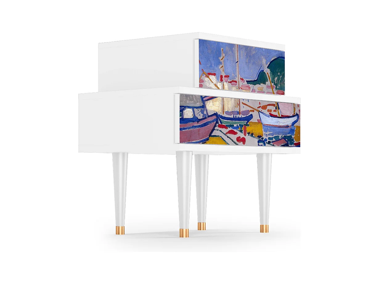 Stolik nocny - 58х58х41 cm - NS1 - The Port of Collioure , Biały