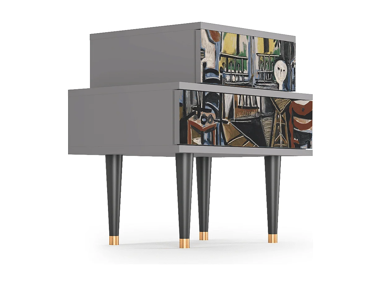 Stolik nocny - 58х58х41 cm - NS1 - Poppy field by van Gogh, Szary