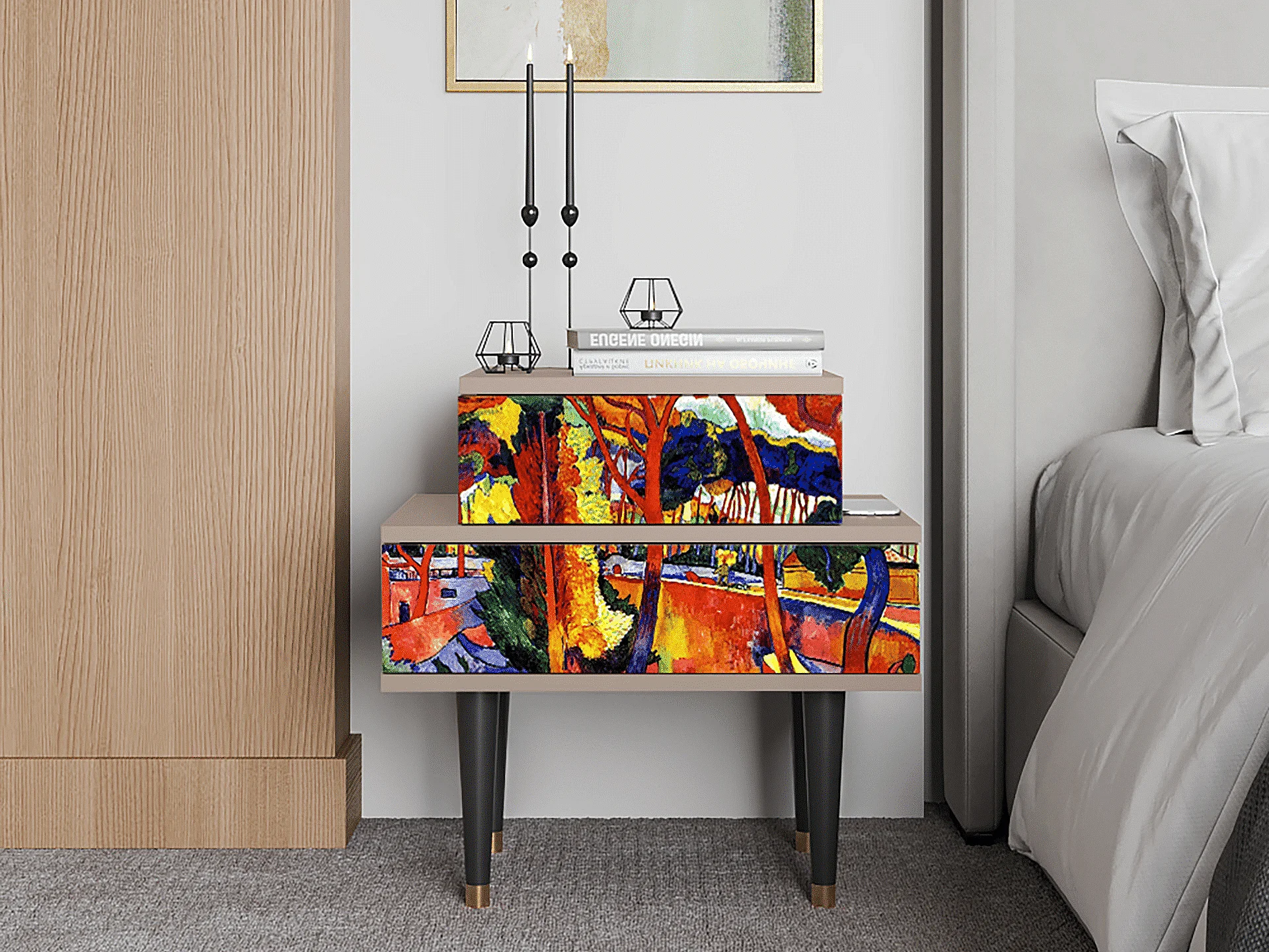 Stolik nocny - 58х58х41 cm - NS1 - Van Gogh Lights, Latte